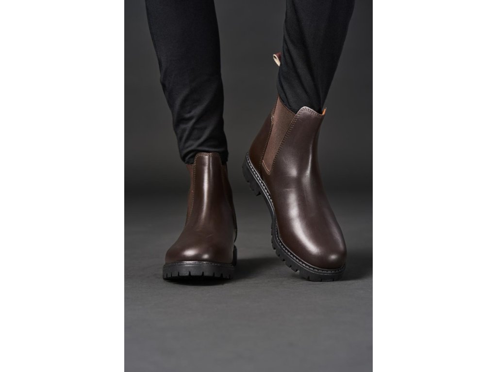 Robustní jezdecká pérka vyrobená z kvalitní pravé kůže. Jsou ideální volbou nejen na koně, ale také na každodenní nošení. Vybavená jsou postranními elastickými vsadkami a poutkem pro lehké nazouvání/zouvání a celkové skvělé padnutí. Boty mají hrubě profilovanou gumovou podrážku. K dispozici i v černé barvě.