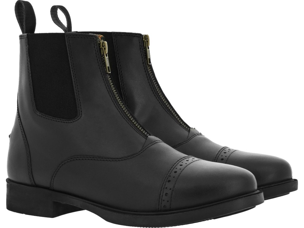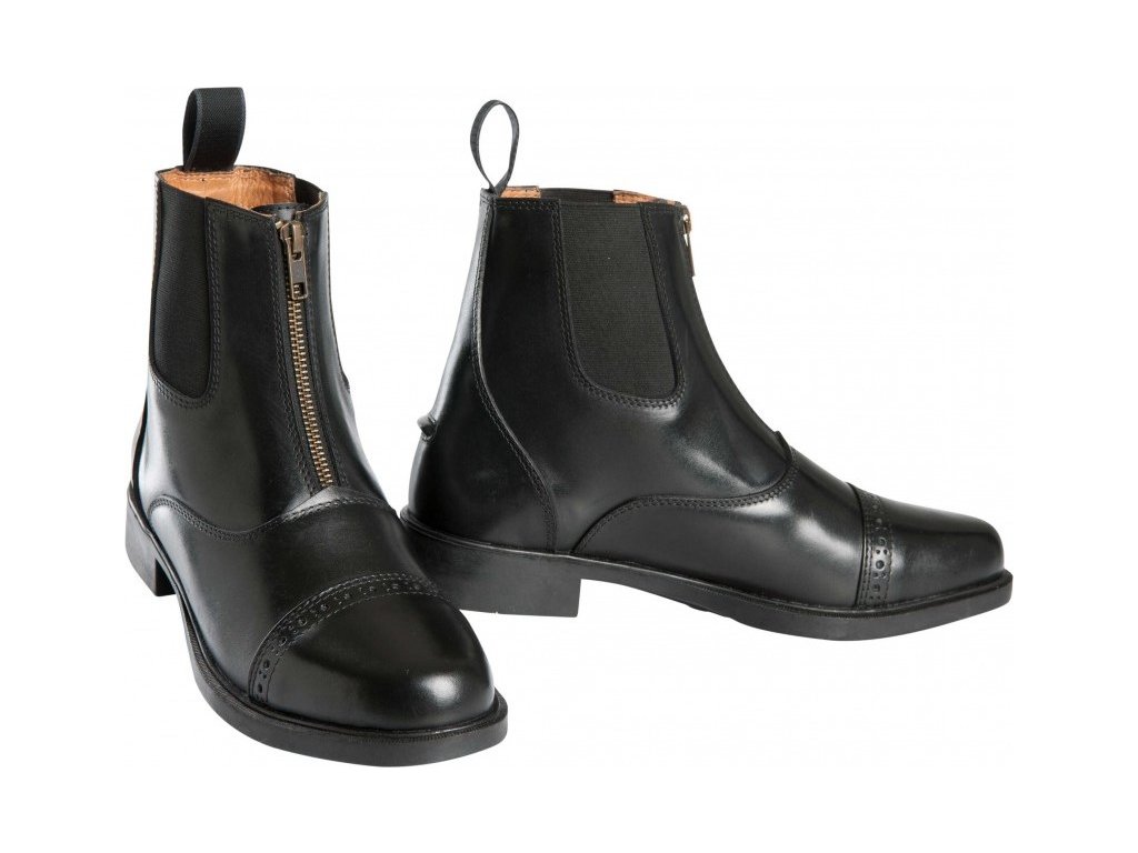 Kožená jezdecká pérka Zip zaujmou precizním zpracováním, elegantním vzhledem a vysokým komfortem při nošení. Jsou vyrobena z kvalitní hovězí kůže a vybavena praktickým předním zipem YKK pro snadné obouvání. Elastický materiál zajišťuje lepší přizpůsobení tvaru chodidla. Dekorativní prošívání podtrhuje jejich moderní a jezdecky elegantní styl. Vnitřní podšívka z hovězí kůže spolu s pohodlnou stélkou Texon z EVA pěny s koženým povrchem poskytují dobré tlumení nárazů a komfort i při celodenním nošení. Protiskluzová gumová podešev zajišťuje jistý krok ve stáji i v sedle.