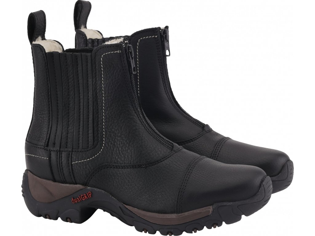 Velmi funkční nízké jezdecké zimní boty vyrobené z kvalitní pravé kůže s pravým beránkem uvnitř od značky EQUIPAGE. Jsou ideální volbou nejen na koně, ale také na každodenní nošení. Bota má takzvanou dualGrip gumovou podrážku, což znamená extra dobrou přilnavost a velmi pohodlnou chůzi. Pohodlné nazouvání díky přednímu zipu a zadnímu poutku. K dispozici i v hnědé barvě a v letní variantě.