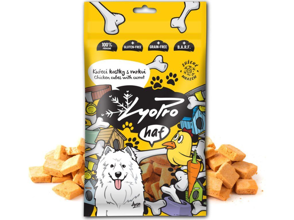 Pochoutka pro psy Lyopro, mrazem sušené kuřecí s mrkví, 50 g
