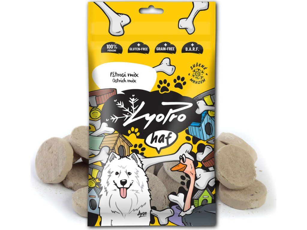 Pochoutka pro psy Lyopro, mrazem sušený pštrosí mix , 50 g