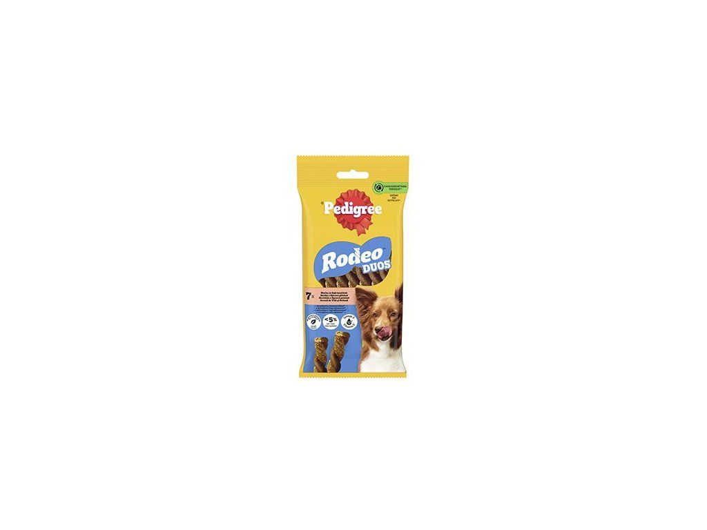 Pedigree pochoutka Rodeo Duo hovězí a sýr jsou chutné kroucené psí pochoutky ideální pro každodenní rozmazlování. Díky jedinečnému zakroucenému tvaru se skvěle žvýkají a umožní vám užívat si hraní a chvíle vzájemného sbližování. Žvýkací pamlsky Rodeo™ obsahují omega-3 nenasycené mastné kyseliny, vitaminy a minerály. Neobsahují žádná umělá barviva ani ochucovadla, takže z nich můžete mít opravdu dobrý pocit i vy!