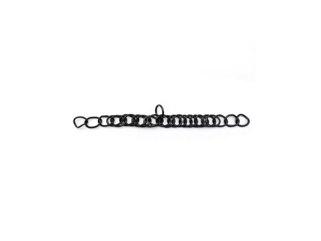 Podbradní řetízek k udidlu, funguje skvěle společně s bezpečnostními svorkami od Fageru. Vyroben z vysoce kvalitní nerezové oceli. Dodáván po 1 ks v univerzální velikosti v černé barvě. K dispozici také ve stříbrné barvě.