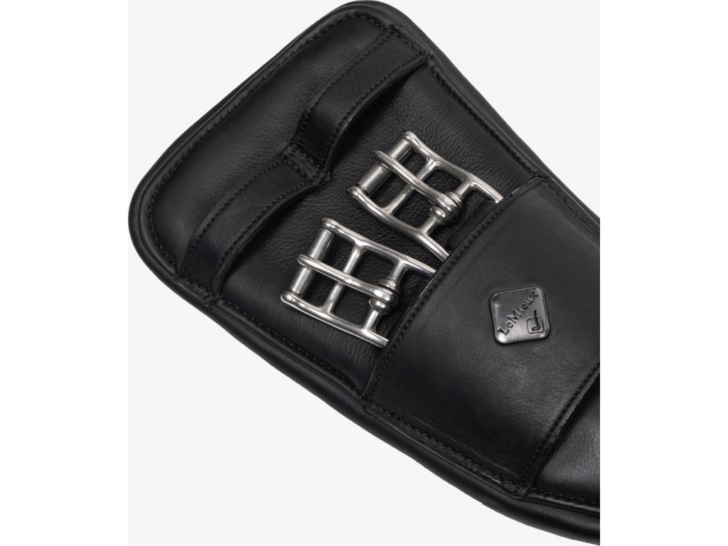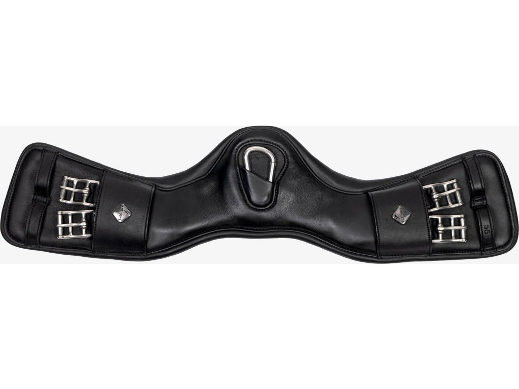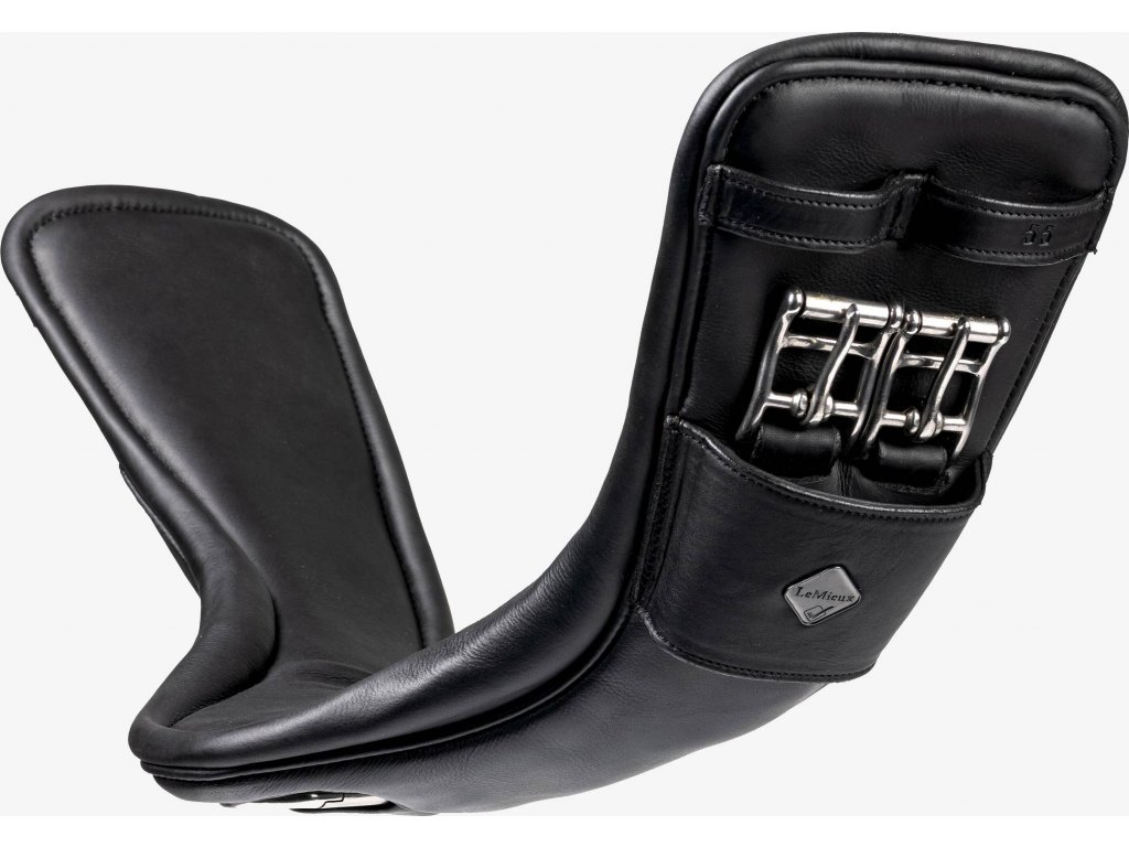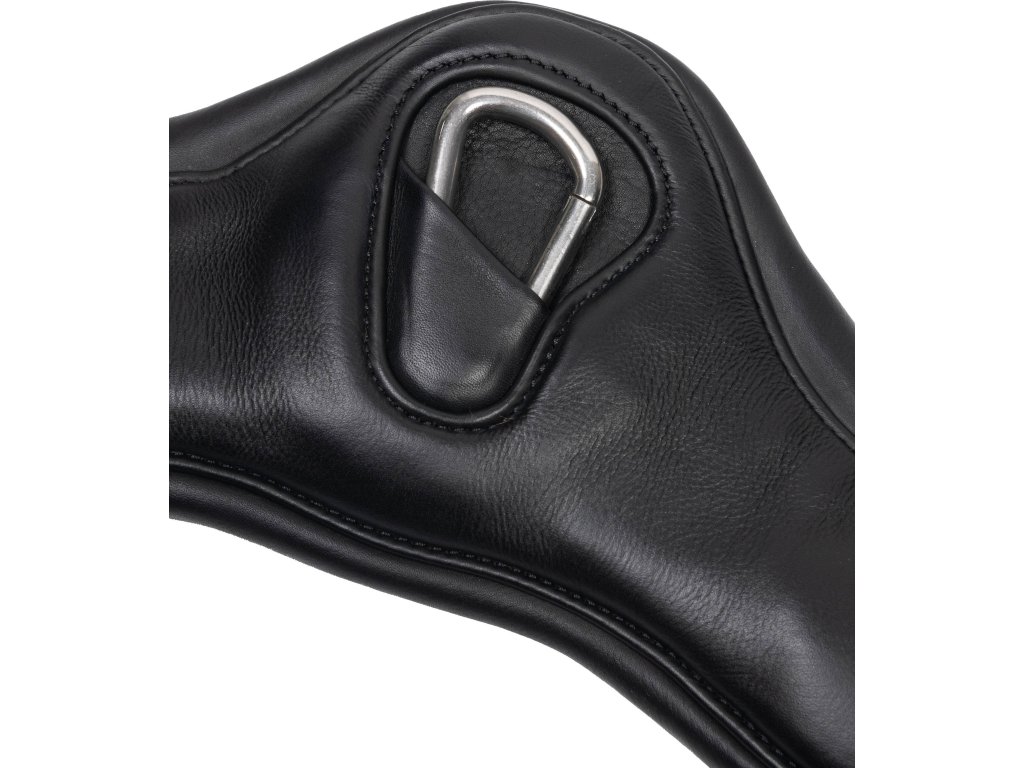 Vysoce kvalitní drezurní podbřišník vyrobený z kombinace gelu a ultra měkké naolejované kůže. Rozkládá tlak rovnoměrně po celé ploše. Díky anatomickému tvaru poskytuje dostatek prostoru za loktem a neomezuje koně v pohybu. Zvyšuje stabilitu sedla a předchází odření. Vybavený integrovanou sponou pro snadné uchycení pomocných otěží, poprsníku či martingalu. Dostupný v černé barvě.