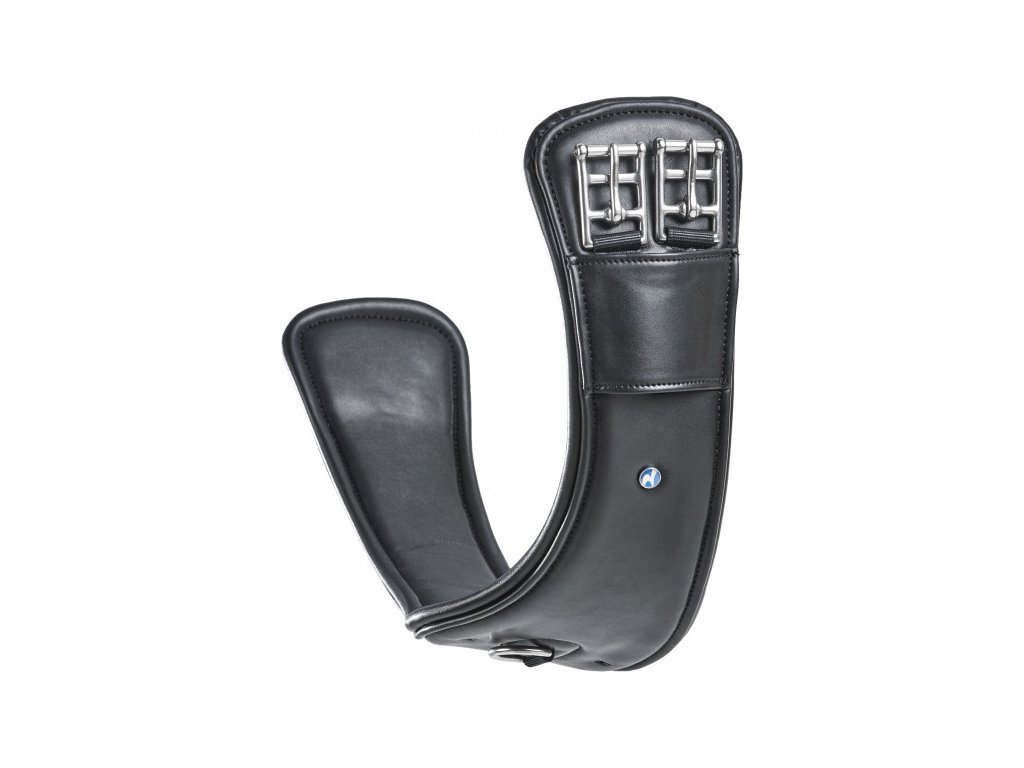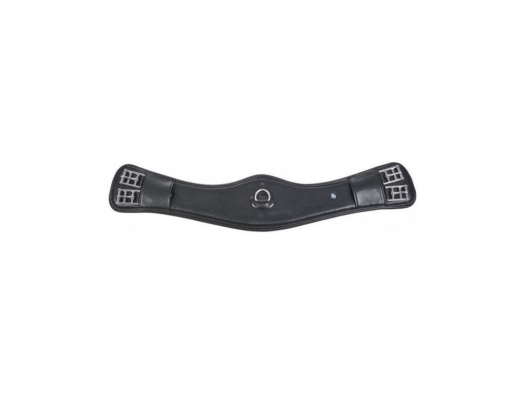 Anatomicky tvarovaný, lehce zakřivený, krátký podbřišník pro koně s měkkým polstrováním. Vhodný pro břichaté koně nebo koně s výraznými žebry a úzkým hrudníkem, kterým obvykle klouže podbřišník dopředu. Zúžený v oblasti loktů, ale dostatečně široký pro optimální rozložení tlaku. Vyrobený ze syntetické kůže. Snadno se udržuje díky hygienicky hladkému povrchu. Jeden D-kroužek uprostřed pro uchycení pomocných otěží. Nerezové válečkové přezky.