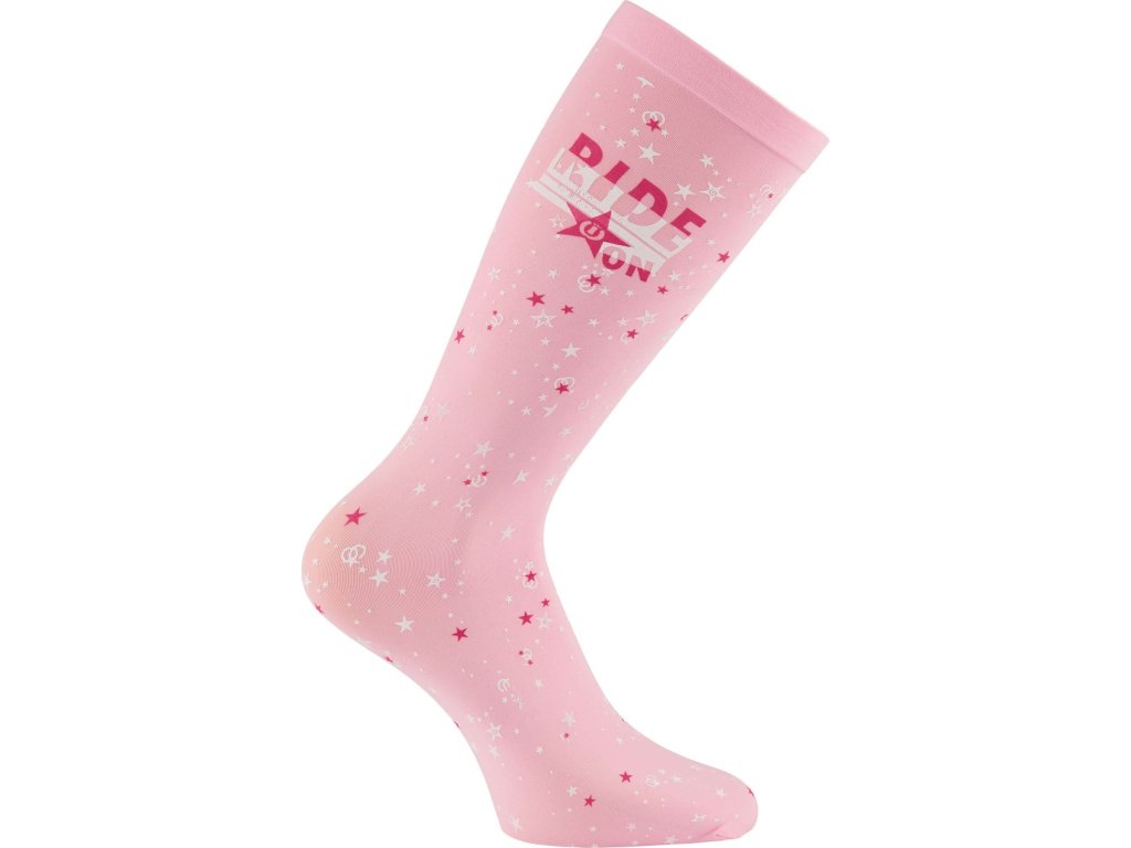 Tenké a měkké podkolenky, které jsou zdobeny kontrastním potiskem hvězdiček a podkov po celé ploše, doplněny inspirativním citátem „Ride on“. Jsou perfektní do vysokých jezdeckých bot, poskytují pohodlí při každé jízdě.