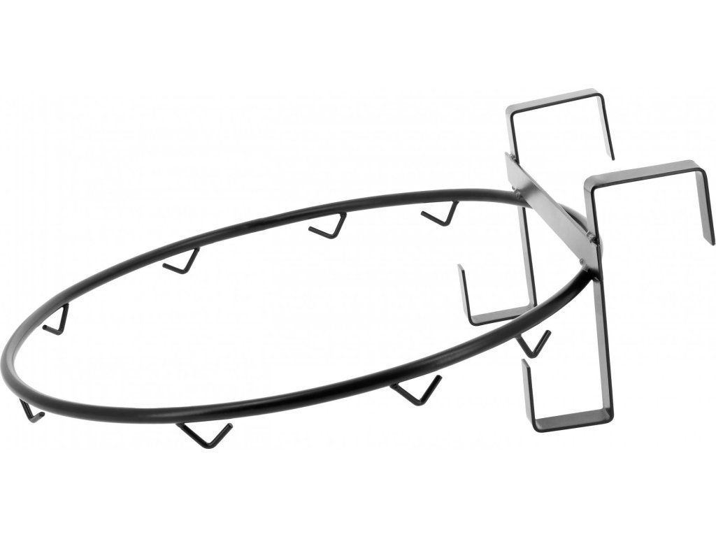 Praktická pomůcka pro snadné plnění sítí na seno. Stojan je vybaven 8 háčky pro připevnění sítě a dvěma háky pro zavěšení například na box. Síť na seno se vloží do kruhové části stojanu, kde menší háčky na kruhu zachytí horní okraj sítě a drží ji na místě. Díky stojanu můžete síť snadno naplnit senem shora, aniž byste ji museli držet v ruce. Rozměry: délka: 54 cm, šířka: 60 cm, výška: 20,5 cm.
