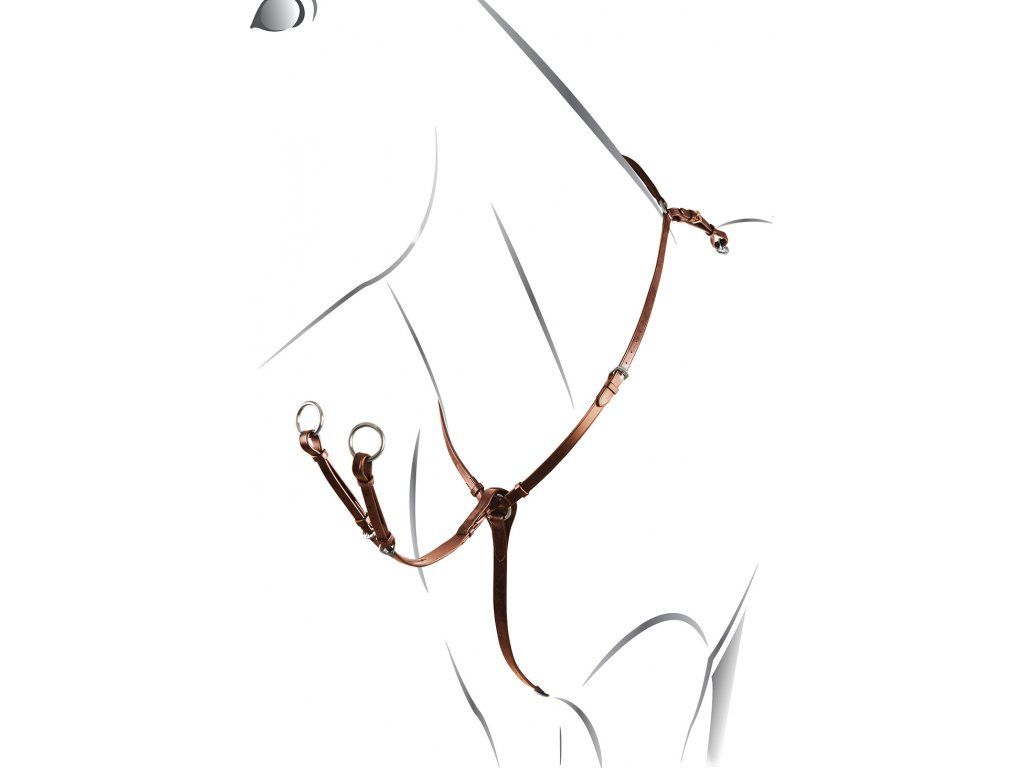 Špičkový poprsník na hony vyrobený z vysoce kvalitní kůže. Poprsník je plně nastavitelný a opatřen odnímatelnou martingalovou vidlicí. Vybaven stříbrným kováním z nerezové oceli. Dostupný ve více barvách. Velikosti PONY, COB a FULL.