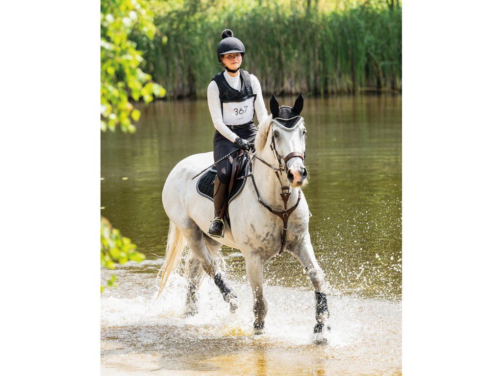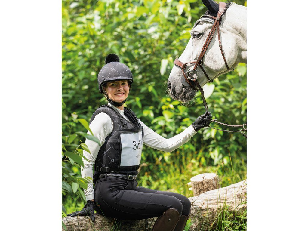 Stylový potah na helmu s potiskem třmenů a nadýchanou bambulí dodá vaší jezdecké výbavě originální vzhled. Praktický kšilt chrání před sluncem i nízko visícími větvemi, přitom...