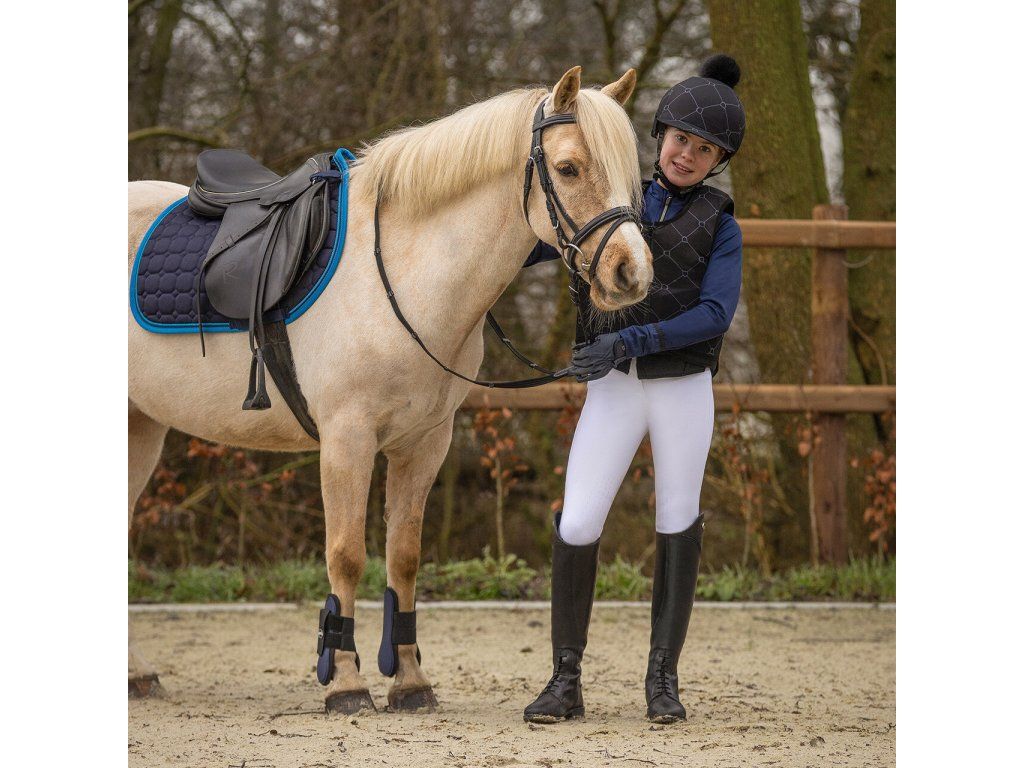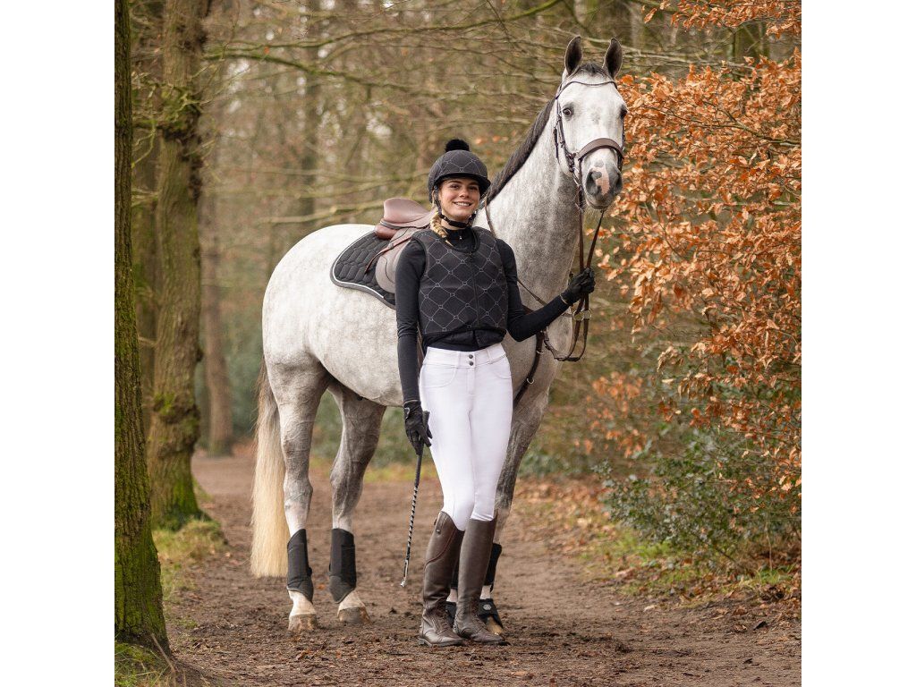 Bezpečnostní jezdecká přilba v elegantním vzhledu s třpytivým detailem. Vybavena prodyšnou podšívkou z polyesterového materiálu, měkkou ochranou brady a bezpečnostním zapínáním....