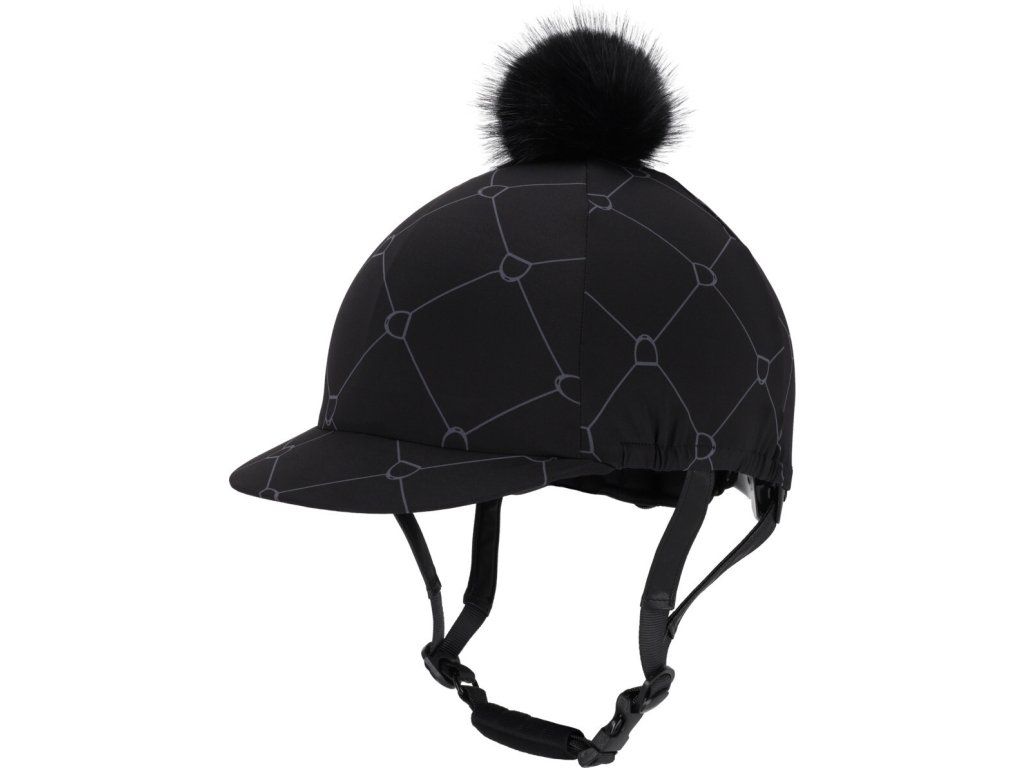 Stylový potah na helmu s potiskem třmenů a nadýchanou bambulí dodá vaší jezdecké výbavě originální vzhled. Praktický kšilt chrání před sluncem i nízko visícími větvemi, přitom však nepřekáží v případě pádu. Potah je vhodný pro helmy s kšiltem i bez něj a díky univerzální velikosti je vhodný téměř na každou helmu. Vyroben z pružného materiálu, který se snadno udržuje. Lze prát v pračce na 30 °C (bez aviváže, nesušit v sušičce).