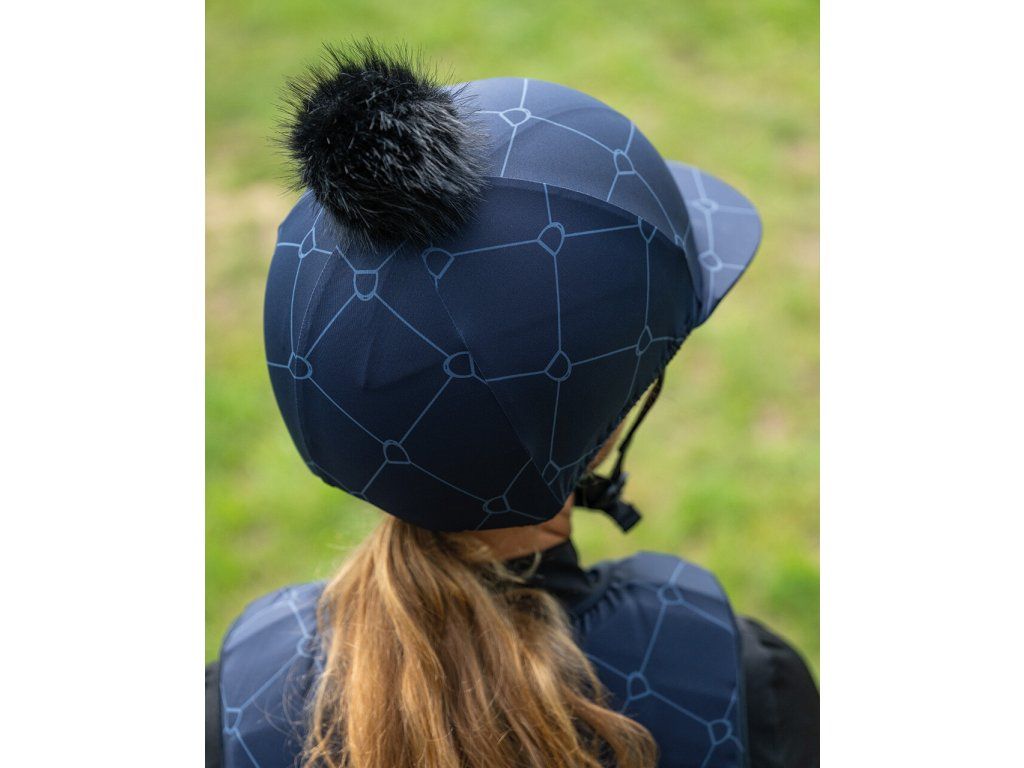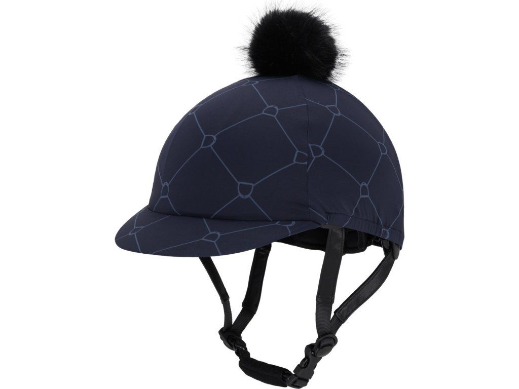 Stylový potah na helmu s potiskem třmenů a nadýchanou bambulí dodá vaší jezdecké výbavě originální vzhled. Praktický kšilt chrání před sluncem i nízko visícími větvemi, přitom však nepřekáží v případě pádu. Potah je vhodný pro helmy s kšiltem i bez něj a díky univerzální velikosti je vhodný téměř na každou helmu. Vyroben z pružného materiálu, který se snadno udržuje. Lze prát v pračce na 30 °C (bez aviváže, nesušit v sušičce).