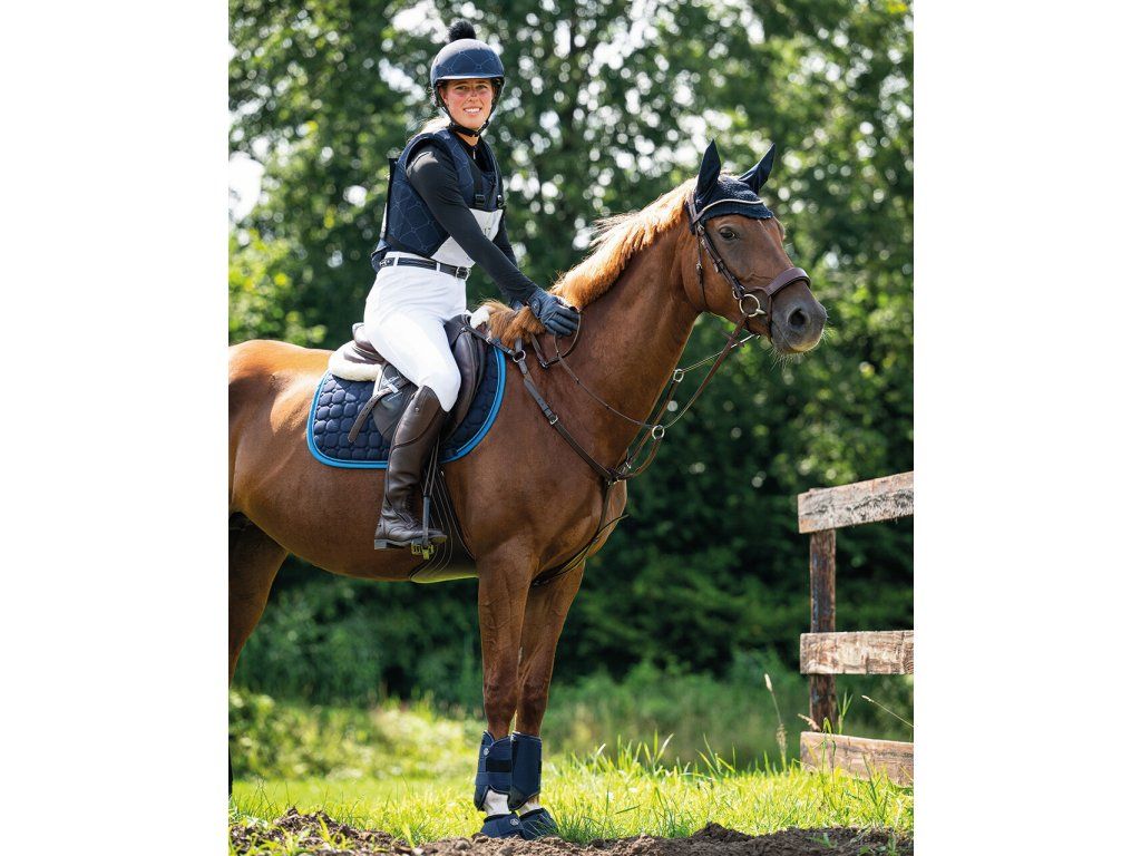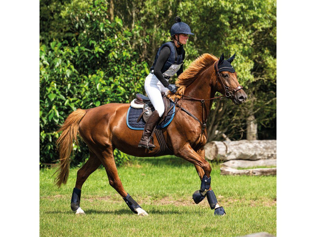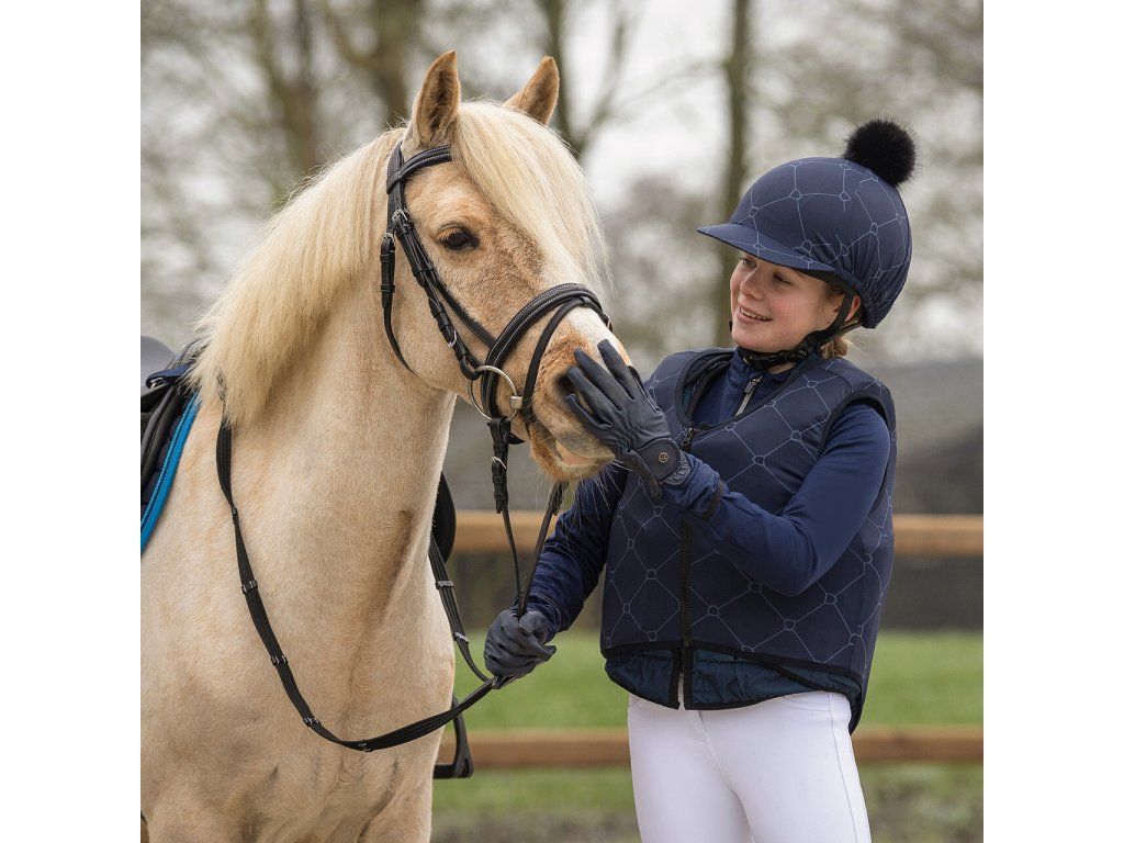Stylový potah na helmu s potiskem třmenů a nadýchanou bambulí dodá vaší jezdecké výbavě originální vzhled. Praktický kšilt chrání před sluncem i nízko visícími větvemi, přitom...