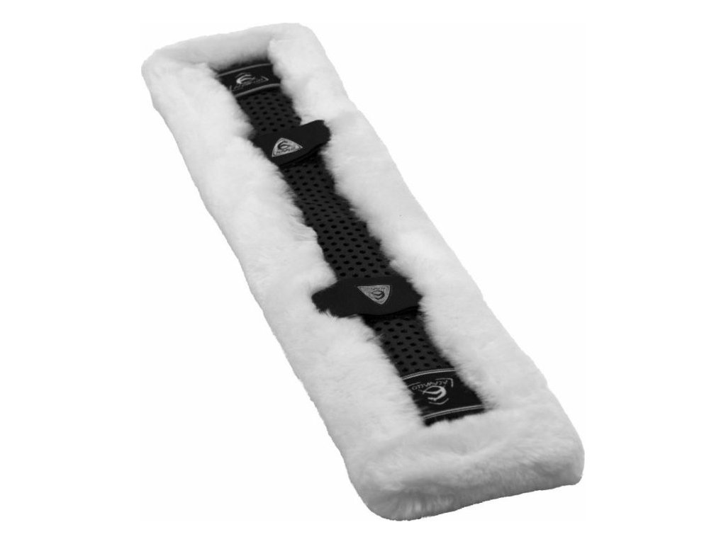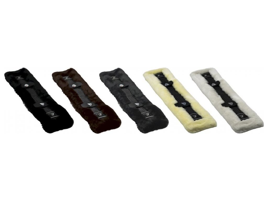 Gelový potah na podbřišník s ovčí kůží, vhodný pro koně s citlivou pokožkou nebo pokud chcete zvýšit jeho komfort, velmi pohodlný, podporuje volnost pohybu. Kožíšek je měkký, lehký a jemný, poskytuje perfektní ochranu pro citlivé oblasti pokožky, zabrání odření. Gel je silný 5 mm, což se ukázalo jako ideální tloušťka, uprostřed je silnější kvůli většímu tlaku a výraznému tření. Gel je protiskluzový, tlumí nárazy, je velmi odolný, ale zároveň pružný. Upevnění pomocí suchého zipu a provlečení elastickými poutky. Ideální na krátké rovné podbřišníky.