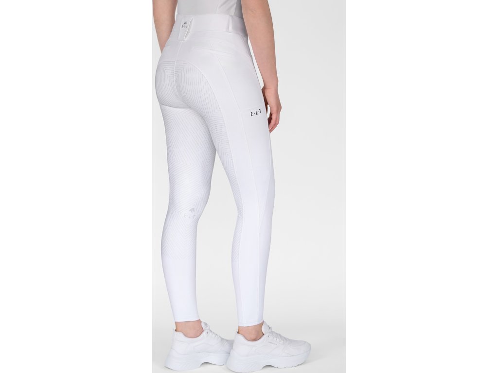 Kvalitní rajtk, které nabízejí nejen elegantní vzhled, ale především pohodlí při jízdě i běžném nošení. Silikonový grip po celé délce s integrovaným logem E·L·T zajišťuje optimální přilnavost v sedle a maximální stabilitu. Rajtky jsou vyrobeny z bi-elastického, prodyšného a vodoodpudivého materiálu s obsahem recyklovaných vláken, což z nich činí nejen funkční, ale i udržitelnou volbu. K praktickým detailům patří boční kapsa na mobilní telefon, dvě šikmé kapsy s jemným saténovým lemováním a poutka na opasek. Zdobí je stříbrný potisk loga E·L·T na zadním poutku a kvalitní kovový štítek s logem značky.
