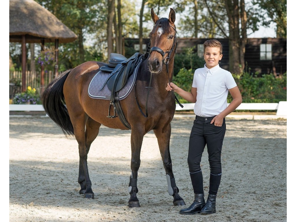 Rajtky Luc mají krásný elegantní vzhled díky protiskluzovému gripu na kolenou s čárovým a bodovým vzorem. Na přední straně jsou dvě štěrbinové kapsy a na zadní straně taktéž dvě kapsy. Na levé přední kapse je vyšité detailní semišové logo QHP. K dispozici také v pánských velikostech.