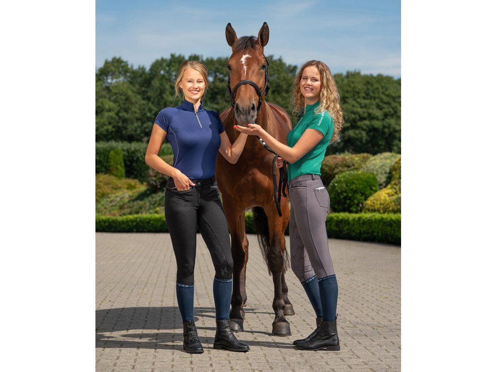 Dámské rajtky s protiskluzovým silikonovým gripem. Vyrobeny jsou z lehké a prodyšné látky, proto jsou ideální na léto. Opatřeny jsou vpředu dvěma zdobenými kapsami na zip, a lycrou na nohavicích. Elegantní vzhled dodává nápis „Equestrian Sports“ na zadní kapse, prošívání a stříbrné detaily na kapsách. K dispozici jsou také v šedé barvě.