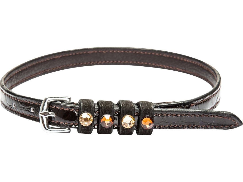 Elegantní řemínky ke špornám Pardouz zaujmou svým designem a precizním zpracováním. Jsou vyrobené z kvalitní kůže a jsou doplněné lakovanými detaily, které spolu s třpytivými kamínky dodávají jezdeckému outfitu výrazný a reprezentativní styl. Dodáváné v páru.