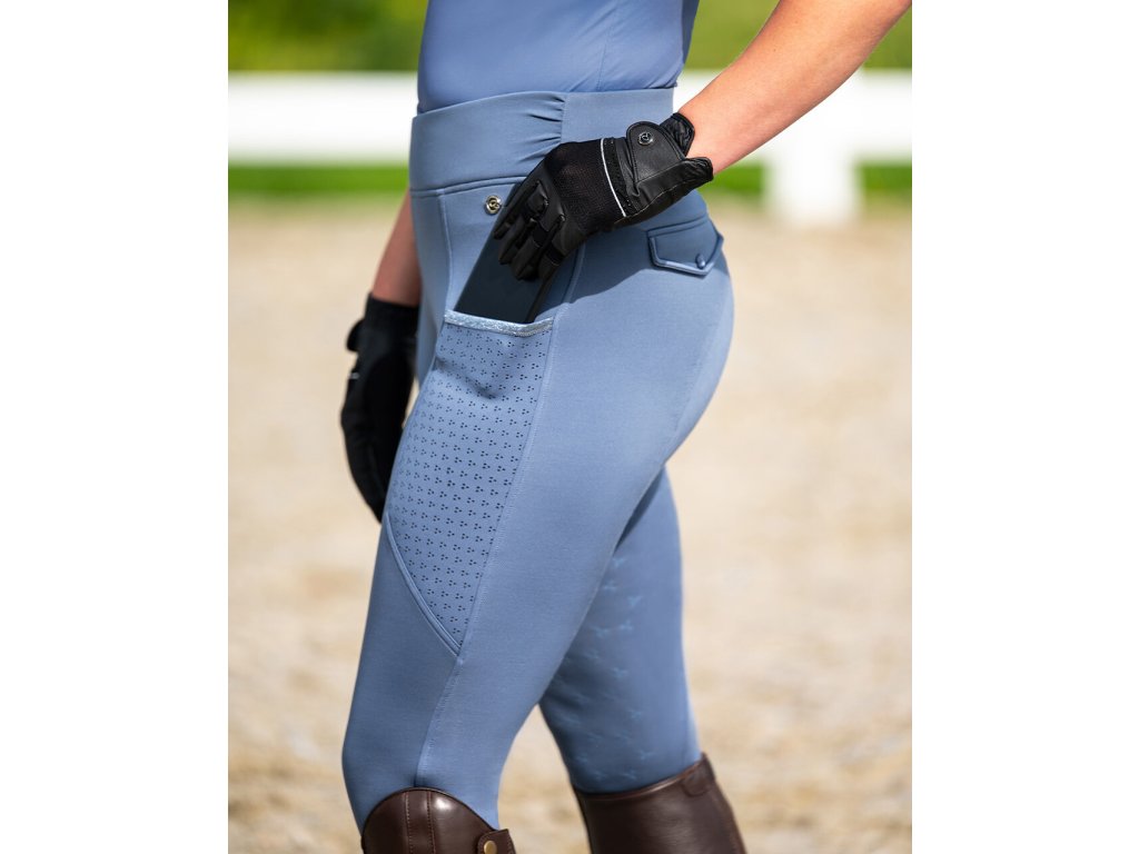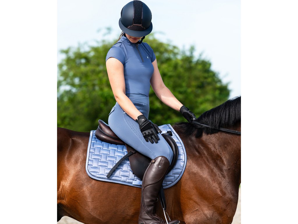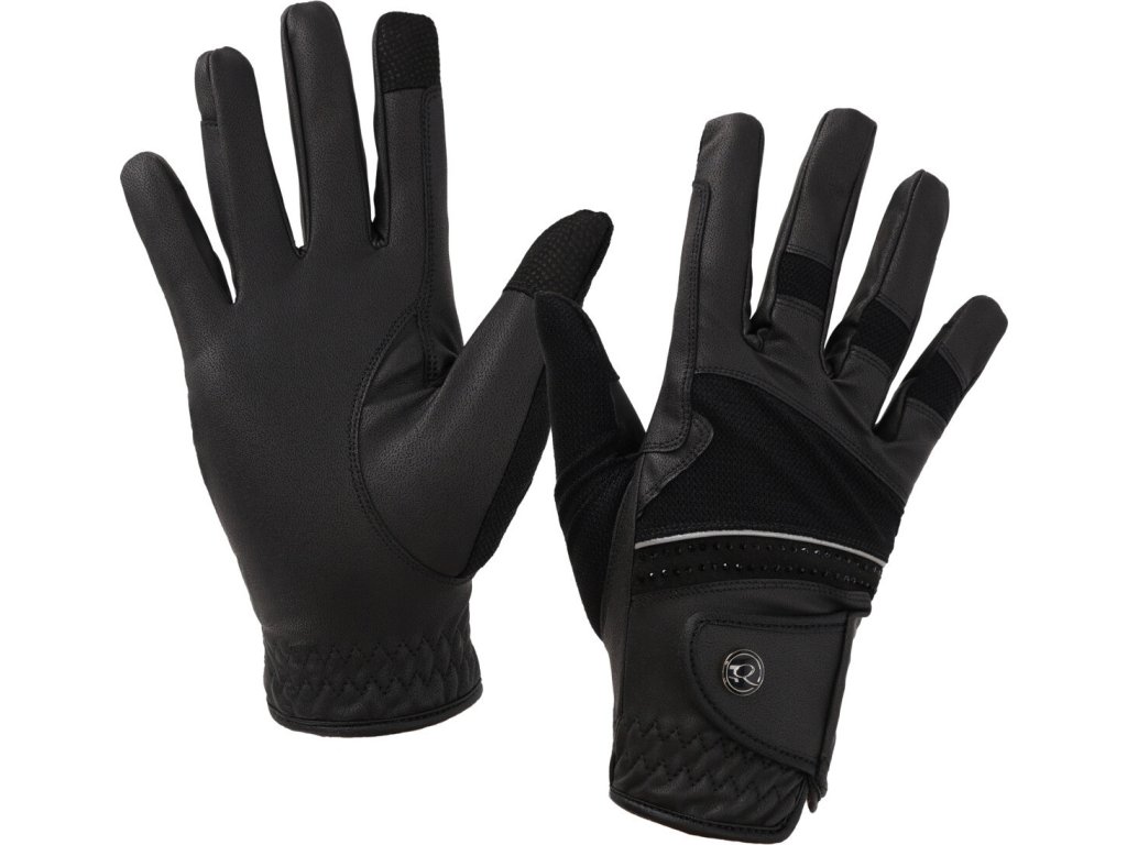 Kvalitní dámské rukavice kombinují eleganci se špičkovou funkčností. Dlaň je vyrobena z přilnavého materiálu, který zajišťuje jistý úchop otěží. Zesílené části mezi prsteníčkem, malíčkem, ukazováčkem a palcem poskytují dodatečnou podporu a zvyšují odolnost. Pro příjemné nošení během letních dní je hřbet ruky a klouby z prodyšné síťoviny, která udržuje optimální ventilaci. Díky speciální látce na palci a ukazováčku lze snadno používat telefon, aniž byste rukavice sundávali. Rukavice se zapínají na suchý zip a zdobí je odznak s písmenem Q spolu s decentním kamínkem na hřbetu ruky. Rukavice lze prát v pračce na 30 °C; doporučuje se použít prací sáček, vyhnout se aviváži a nesušit v sušičce.