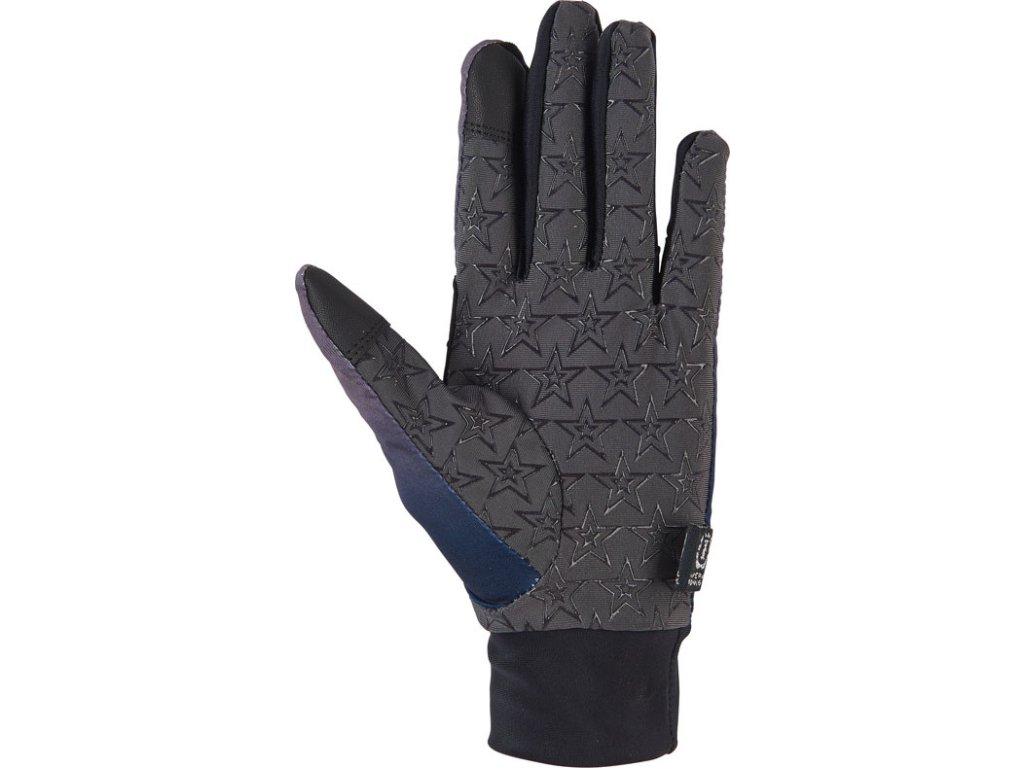 Stylové rukavice s barevným přechodem kombinují moderní design s funkčními detaily pro maximální komfort při nošení. Jsou vybavené reflexním potiskem loga a celoplošným protiskluzovým gripem ve tvaru hvězd na vnitřní straně, který zajišťuje jistý úchop otěží. V oblasti palce a ukazováčku jsou vybaveny materiálem, který je kompatibilní s dotykovou obrazovkou, lze s nimi proto snadno ovládat telefon.
