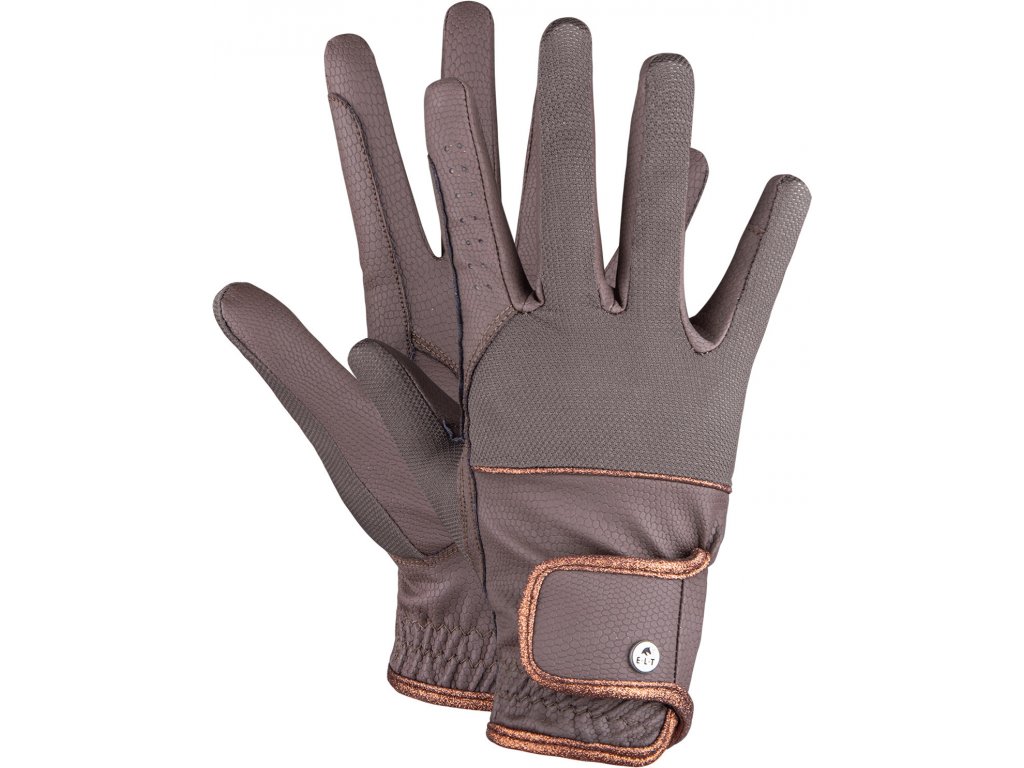 Elegantní lehké jezdecké rukavice vyrobené ze směsi materiálů, zdobeny jemnými třpytkami. Vhodné do vyšších teplot. Mají zesílený materiál mezi prsty pro větší pohodlí. Vnější povrch je kompatibilní s mobilními telefony a umožňuje tak ovládání dotykových displejů. Síťová vložka v zadní části ruky přenáší vlhkost směrem ven, čímž zajišťuje vynikající cirkulaci vzduchu. Zapínání na suchý zip.