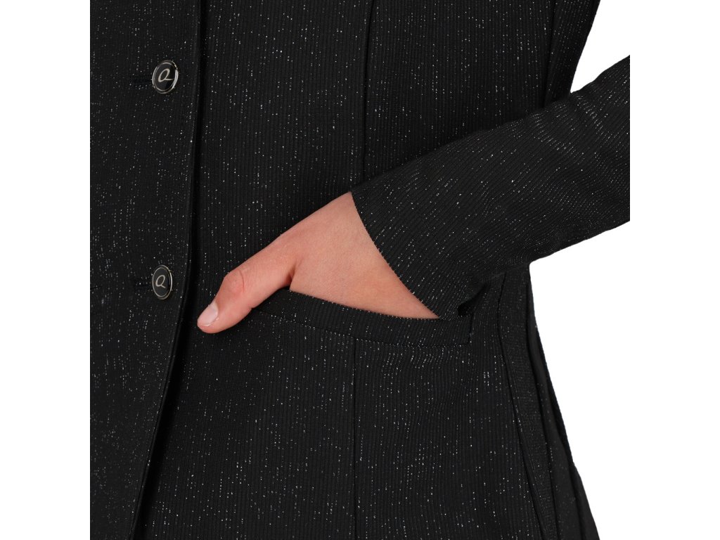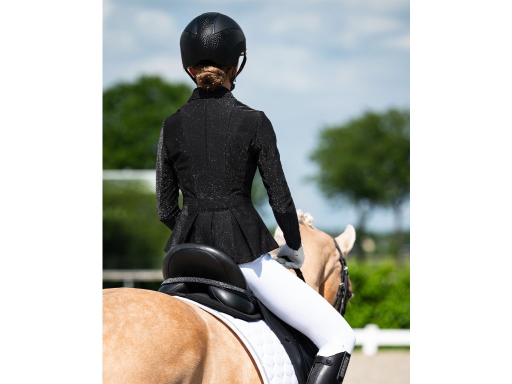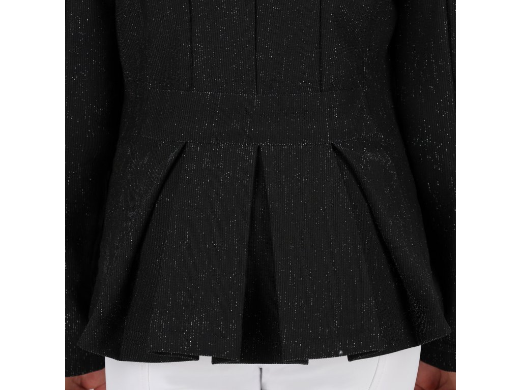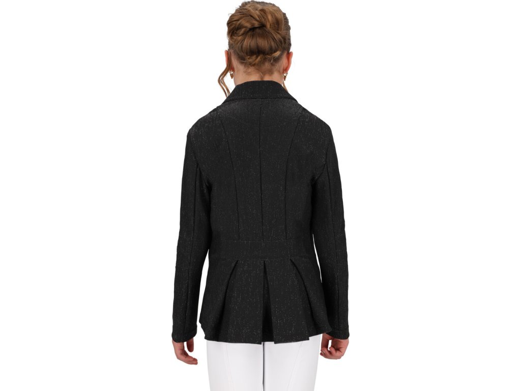 Dětské závodní sako zaujme celoplošným třpytem, který mu dodává odvážný, a přitom elegantní vzhled. Jemné záhyby na zádech podtrhují luxusní střih, zatímco prodyšná a pružná látka zajišťuje pohodlí a volnost pohybu. Sako je vybaveno dvěma předními kapsami a zapínáním na zip s knoflíky. Lze jej prát v pračce na 30 °C, doporučujeme použít prací sáček, vyhnout se aviváži a nesušit v sušičce.