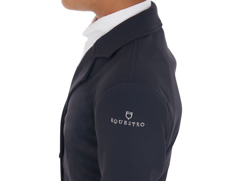 Vysoce kvalitní sako na závody, vyrobeno z prodyšné technické tkaniny. Sako je strečové, dokonale padne, zajišťuje maximální pohodlí a volnost pohybu. Vybaveno zapínáním na tři knoflíky. Zdobeno logem Equestro na rameni. Vhodné pro chlapce i pro dívky. K dispozici také v černé barvě. Vyráběno ve velikostech 8, 10, 12 a 14 let.