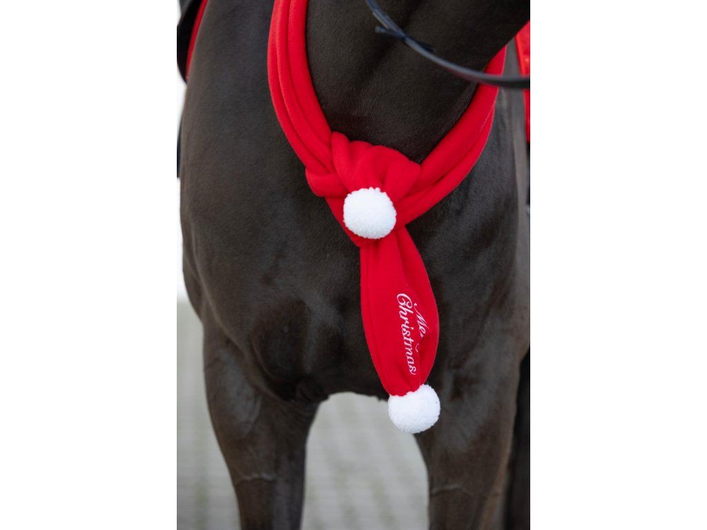 Vytvořte si tu správnou sváteční atmosféru s touto vánoční šálou pro koně. Je vyrobena z měkkého fleecového materiálu, který zajistí pohodlné nošení. Na obou koncích ji zdobí bílé plyšové bambulky a bílý nápis MERRY CHRISTMAS, který dodá vánoční kouzlo. Šála je k dispozici pouze v jedné univerzální velikosti.