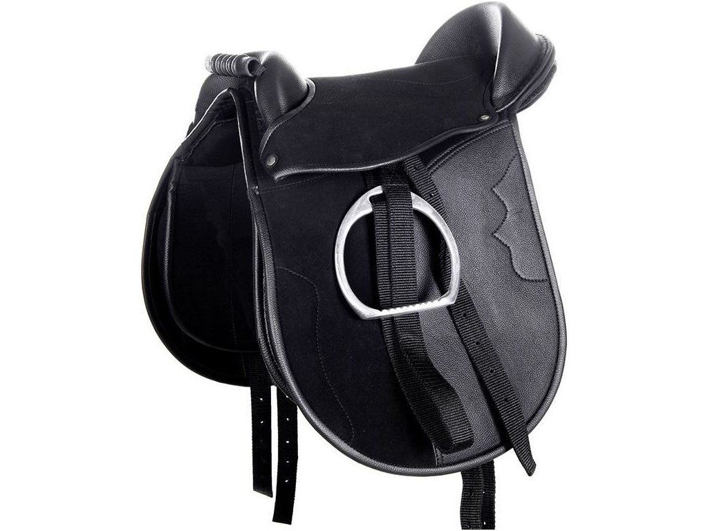 Dětské sedlo dodávané s podbřišníkem, třmeny a třmenovými řemeny. Sedlo je velmi lehké, vyrobeno z umělé kůže. Vybaveno odnímatelnými kolenními opěrkami na suchý zip. Opatřeno kroužkem pro upevnění ocasního popruhu. K dispozici ve dvou barvách.