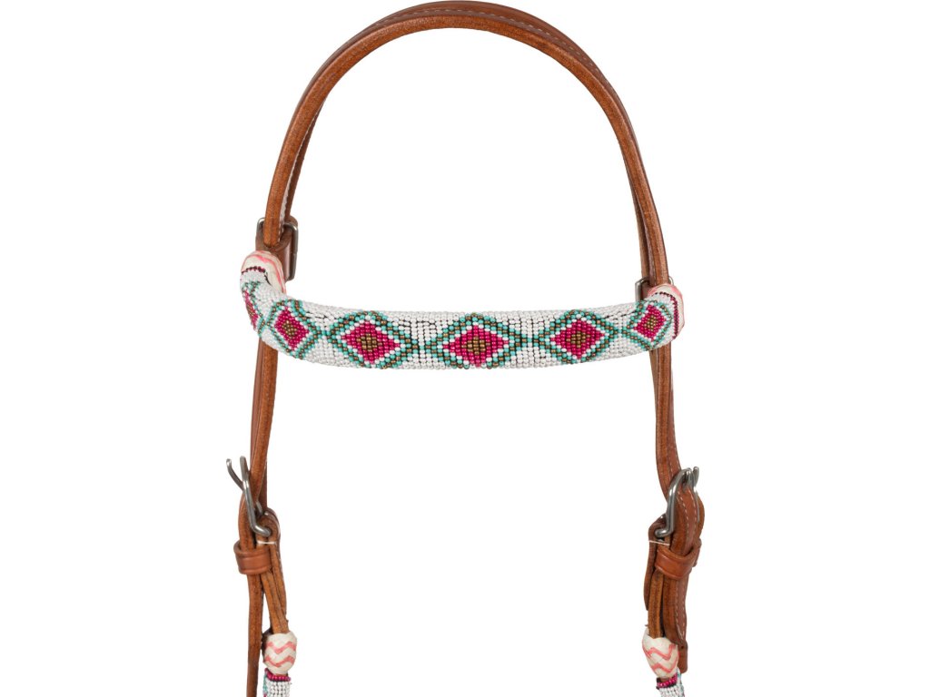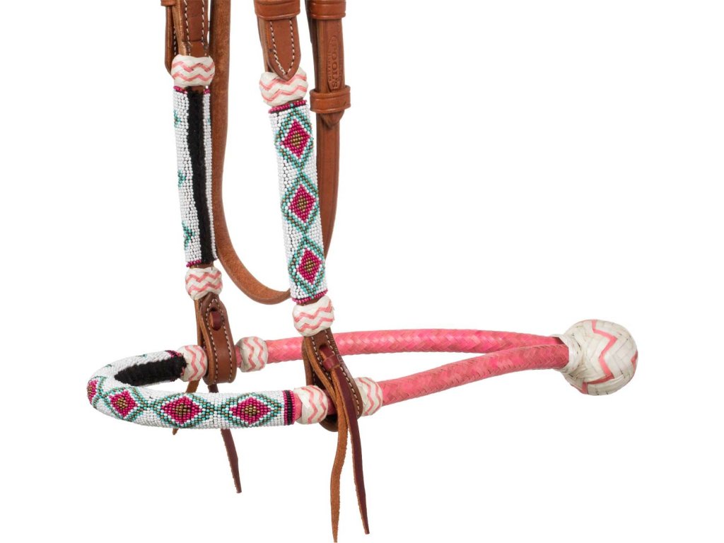Set uzdečky a otěží Bosal Beaded Pool's, COB/FULL, cognac