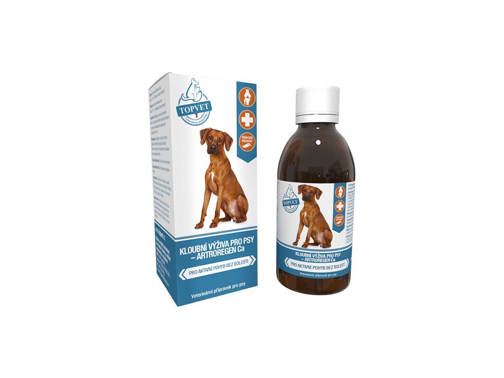 Artroregen Ca - originální receptura spojuje chondroprotektivní stavební látky (glukosamin sulfát, chondroitin sulfát) a unikátní bylinný komplex (šišák bajkalsk, bršlice kozí noha, přeslička rolní nať, rdesno nať). Zmírňuje bolest poškozených kloubů a zlepšuje hybnost a výkonnost. Doporučujeme užívat preventivně od 3 měsíců věku a jako podporu terapie psů s poškozenými klouby.
