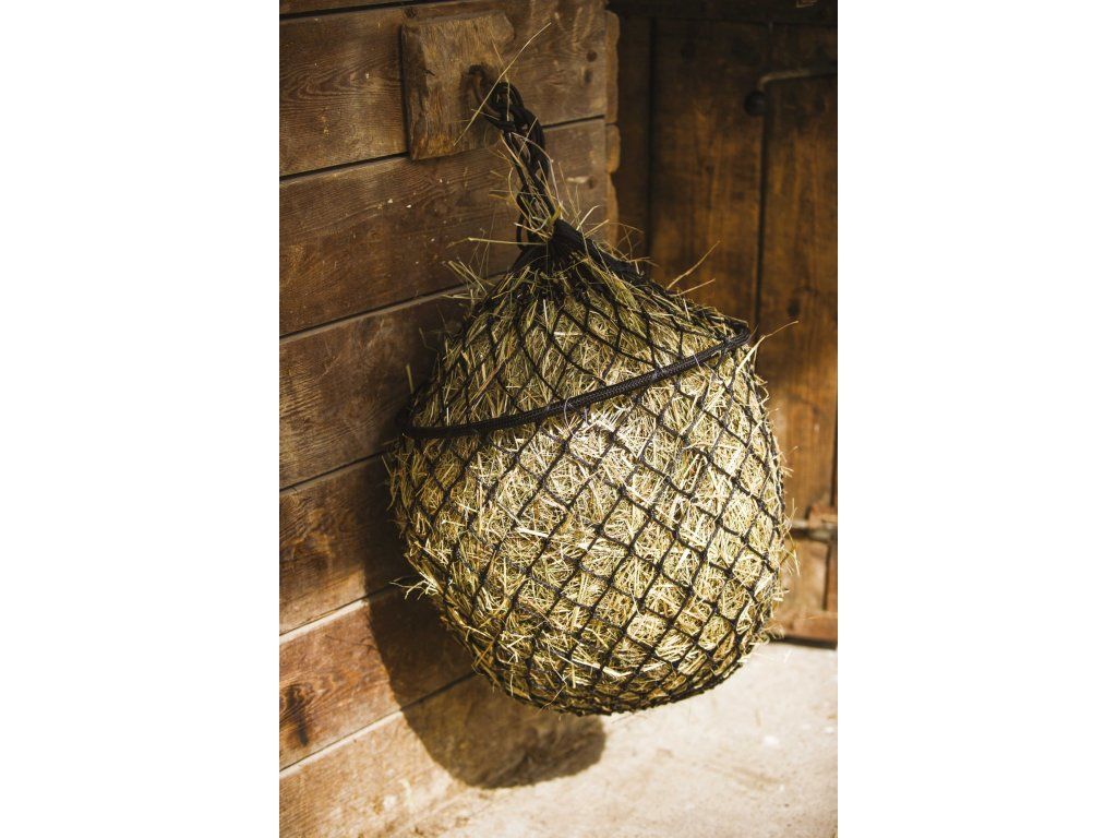 Prostorná síť na seno s průměrem ok 8 × 8 cm a délkou 90 cm, ideální pro pomalejší příjem sena a zábavu pro koně. Je vyrobená z odolného plastového vlákna a pro snadní plnění je vybavená ohebným kovovým kruhem o průměru 50 cm, který je potažen polypropylenovým materiálem. Součástí je praktická taška na přenášení se zipem a uchem.
