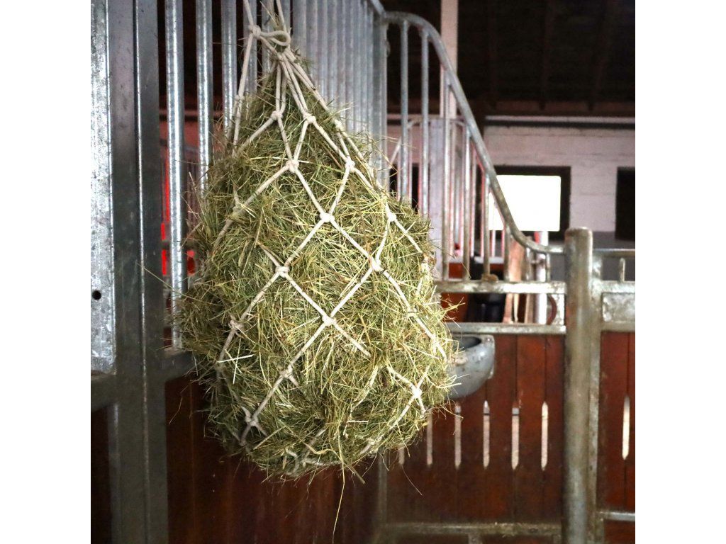 Bavlněná síť na seno s oky 10 x 10 cm, která je ideálním řešením pro pomalejší krmení koní. Nejenže nabízí ekologickou alternativu k tradičním materiálům, ale také splňuje potřeby vašeho koně z hlediska krmení a pohodlí. Délka 100 cm.