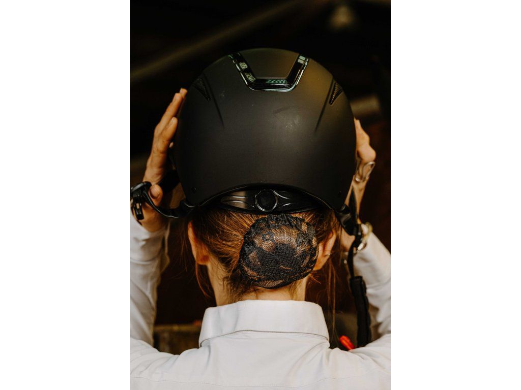 Jemná krajková síťka, která spojuje půvab a funkčnost. Díky svému křehce elegantnímu vzhledu dodá účesu sofistikovaný nádech, zatímco spolehlivě udrží drdol a zajistí bezchybný styling po celou dobu nošení. Ideální volba pro jezdecké závody i každodenní ježdění.
