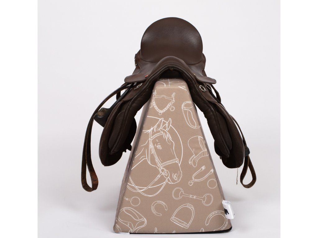 Lehký a praktický stojan na sedlo z odolné polyuretanové pěny s vrchní vrstvou z voděodolného polyesteru. Potah je opatřen zipem, takže ho lze snadno sejmout a vyprat. Díky použitým materiálům je stojan lehký, praktický na manipulaci a zároveň zcela bezpečný pro vaše sedlo. Produkty Horse Mania jsou navrženy pro každodenní používání, nabízí vysokou kvalitu, dlouhou životnost a snadnou údržbu. Rozměry: délka: 55 cm, šířka: 40 cm, výška: 50 cm. Hmotnost: 4 kg. Upozornění: U tohoto produktu právě dochází ke změně loga, nově ho pro vás dodáváme s logem Horsimo. Materiál, kvalita i zpracování zůstávají samozřejmě beze změny.