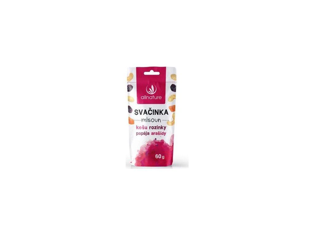Allnature Svačinka Mlsoun se skládá ze samých lákavých dobrot. Je speciálně vyrobená pro všechny mlsouny, kteří neodolají sladkému, přesto se však snaží žít zdravým životním stylem. Kombinace vybraných oříšků a sušených plodů je nutričně vyváženým zdrojem vitamínů, minerálních látek a dalších živin, které náš organismus potřebuje. Již jedna hrst Allnature Svačinky Mlsoun zažene chuť na sladké, aniž byste museli mít jakékoli výčitky. Nezní to skvěle?