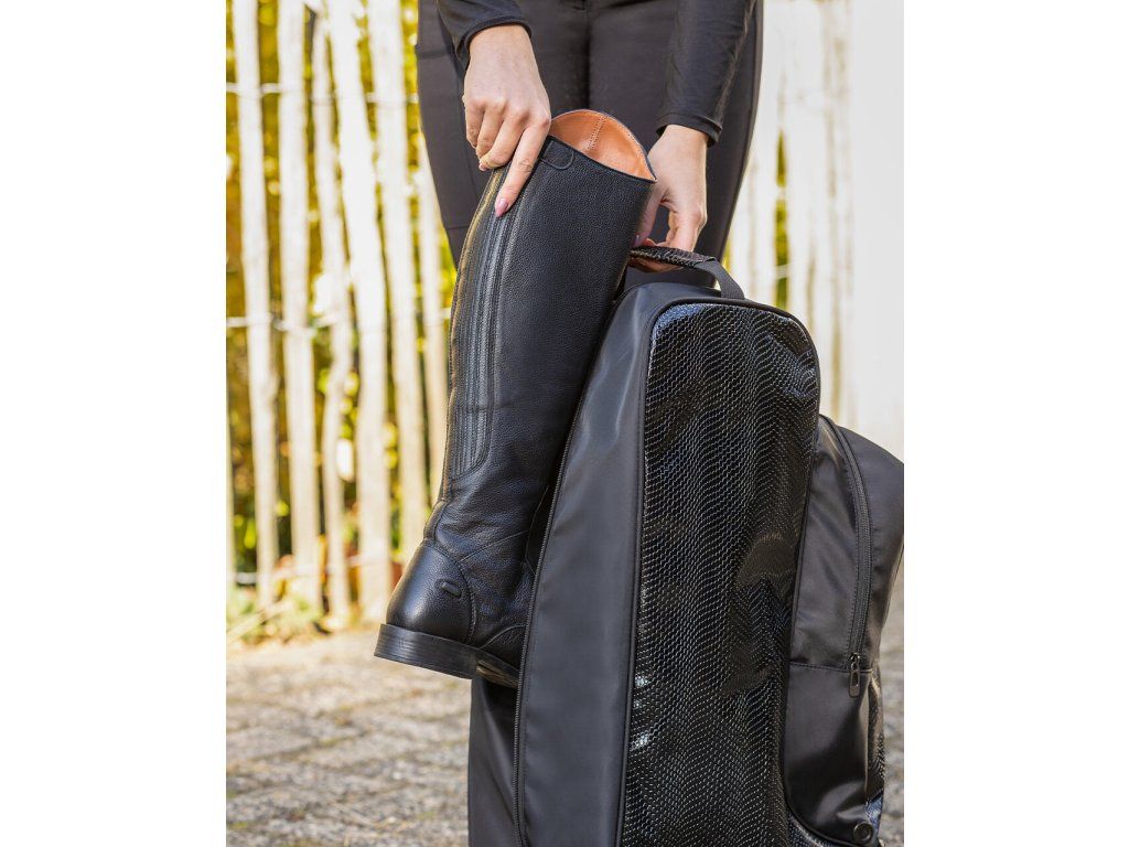 Praktická taška na vysoké jezdecké boty s úložným prostorem pro další potřebné vybavení jako jsou například šporny, rukavice či jiné drobnosti. Taška slouží jako skvělá ochrana...