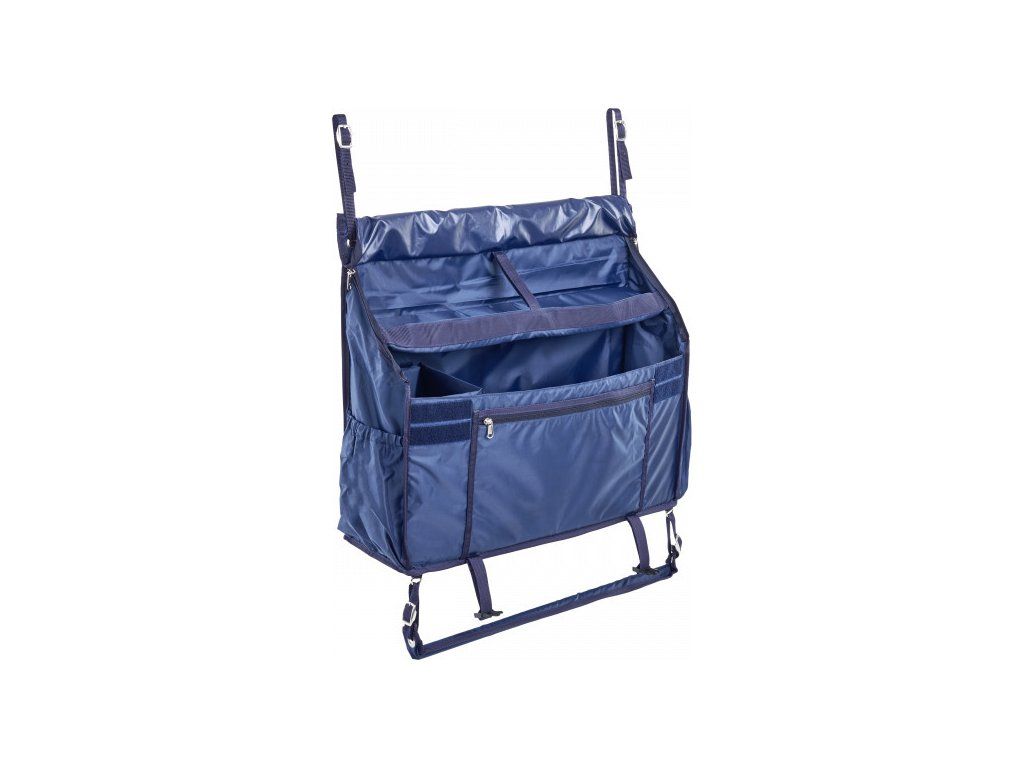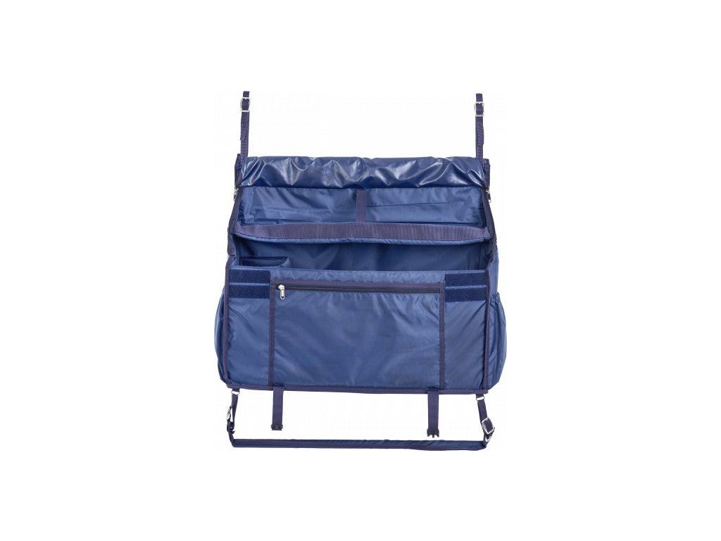 Velmi praktická závěsná taška na box s rukojetí pro snadnou manipulaci. Ideální pro veškeré věci, které potřebujete mít vždy po ruce. Vyrobena je z pevného a snadno udržovatelného polyesterového materiálu. Taška má vnitřní zesílené stěny s nastavitelnou přepážkou a velkým úložným prostorem. Vnější strana je vybavena dvěma kapsami a přední kapsou na zip. Taška je dále vybavena odnímatelnou tyčí ve spodní části, která je ideální pro zavěšení dek, podsedlových deček, kamaší.. Zapínání pomocí popruhů, zipu a suchého zipu.