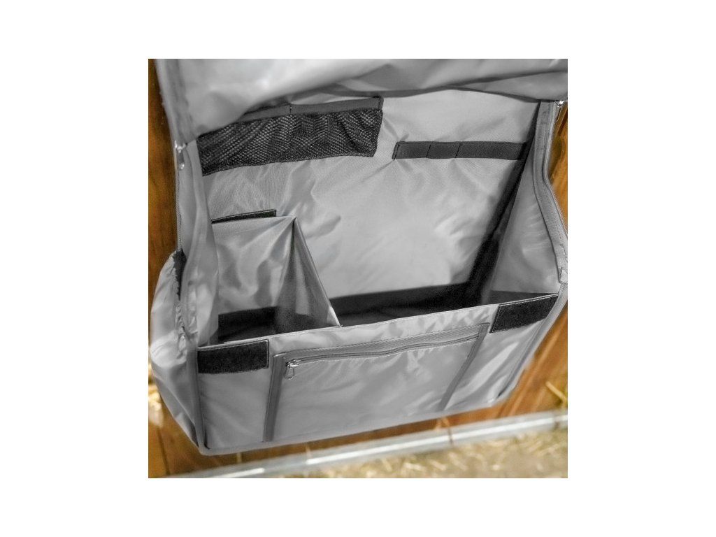 Velmi praktická závěsná taška na box s rukojetí pro snadnou manipulaci. Ideální pro veškeré věci, které potřebujete mít vždy po ruce. Vyrobena je z pevného a snadno udržovatelného polyesterového materiálu. Taška má vnitřní zesílené stěny s nastavitelnou přepážkou a velkým úložným prostorem. Vnější strana je vybavena přední kapsou na zip. Připevnění na box pomocí popruhů.
