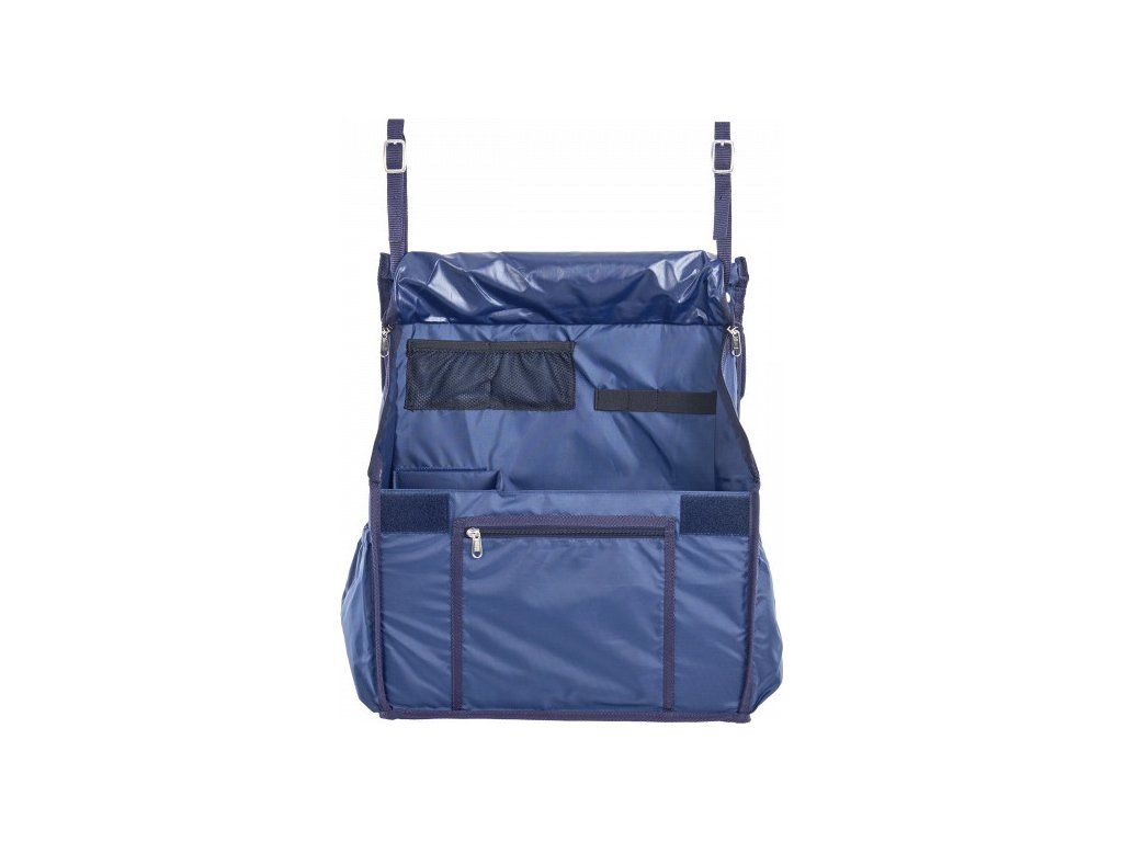 Velmi praktická závěsná taška na box s rukojetí pro snadnou manipulaci. Ideální pro veškeré věci, které potřebujete mít vždy po ruce. Vyrobena je z pevného a snadno udržovatelného polyesterového materiálu. Taška má vnitřní zesílené stěny s nastavitelnou přepážkou a velkým úložným prostorem. Vnější strana je vybavena přední kapsou na zip. Připevnění na box pomocí popruhů.
