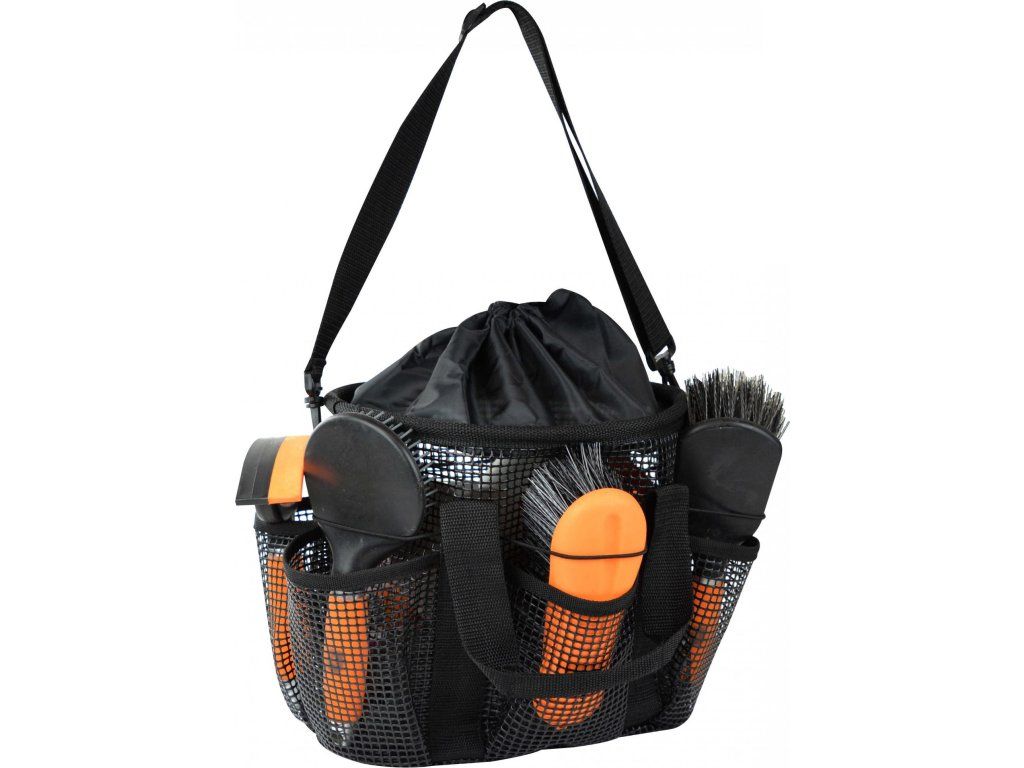 Praktická taška z PVC síťoviny, ideální pro přenášení a organizaci čistících pomůcek. Taška obsahuje šest vnějších kapes s elastickou šňůrkou, která udrží věci bezpečně na místě. Díky dvěma madlům a jednomu nastavitelnému a odnímatelnému ramennímu popruhu s karabinami je přenášení pohodlné a flexibilní.