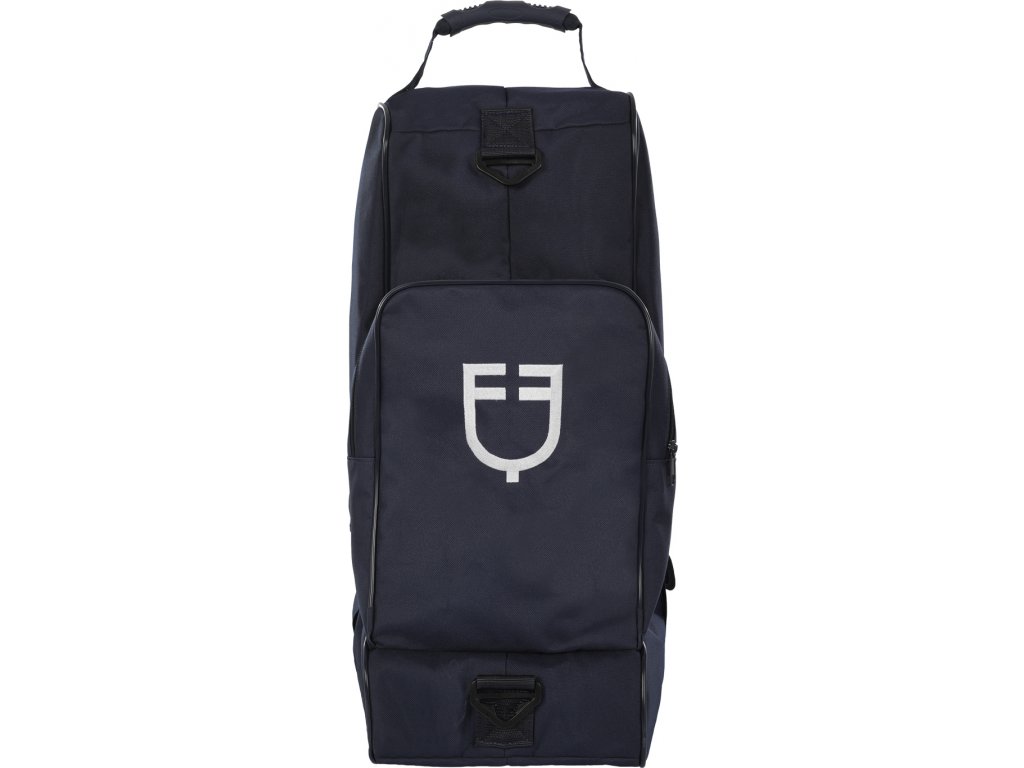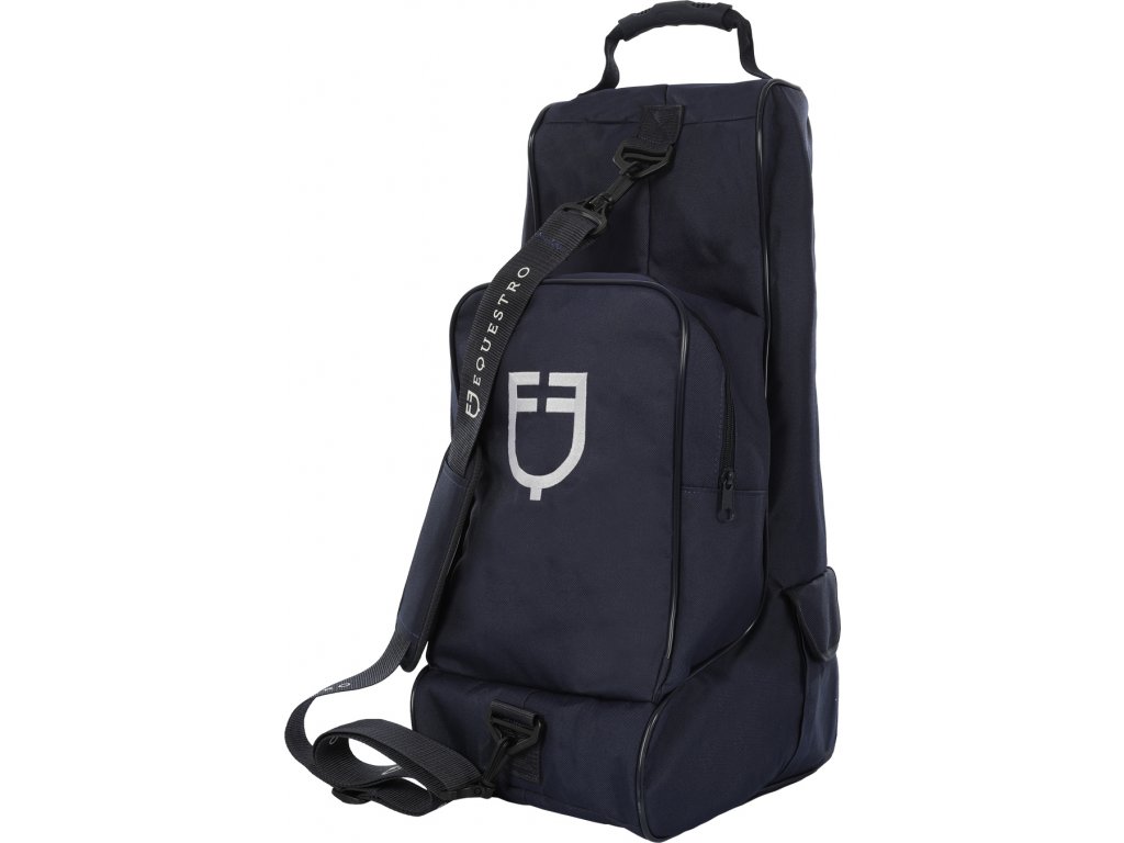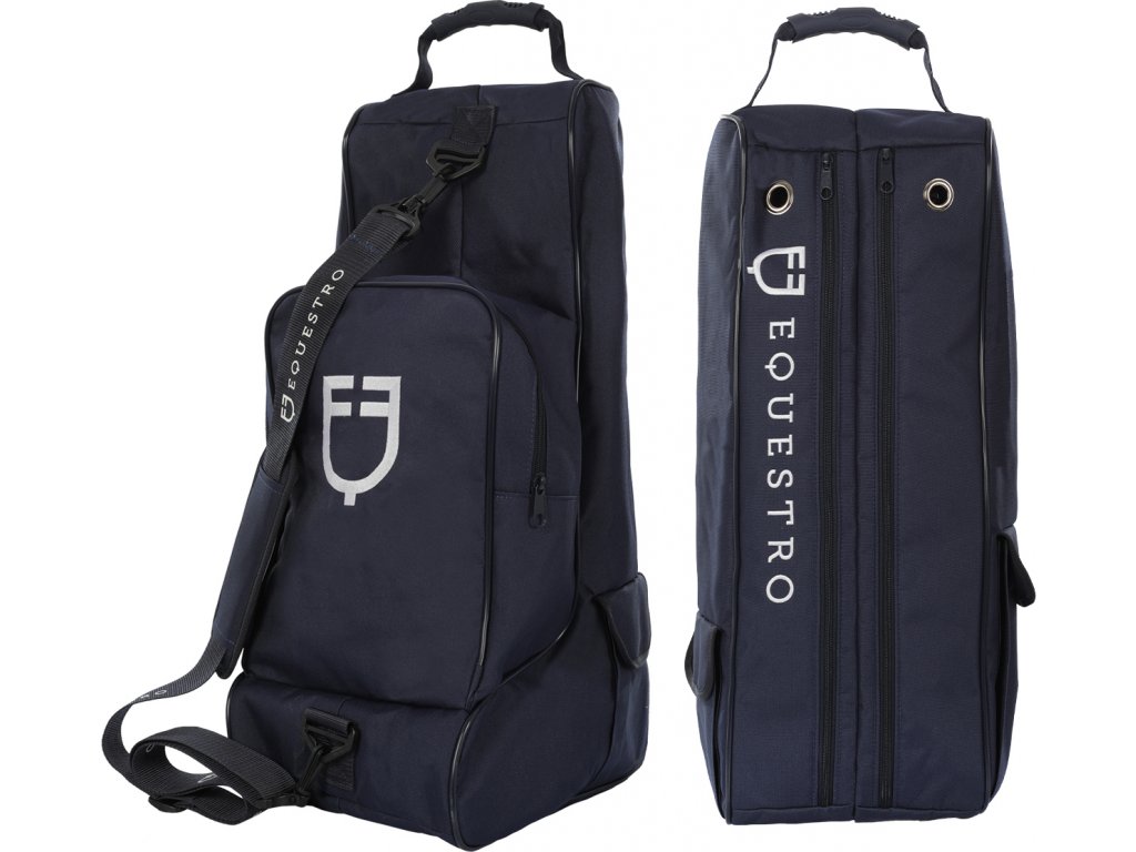Praktická a pohodlná taška na vysoké jezdecké boty a helmu. Vyrobena z vodoodpudivého polyesteru, je omyvatelná a velmi snadno udržovatelná. Vybavena zesíleným pryžovým dnem a plastovou výztuhou na okrajích. Opatřena praktickou ergonomickou rukojetí z nylonu a nastavitelným ramenním popruhem pro snadné přenášení. Zapínání na zip po celé délce umožňuje snadnou manipulaci s botami. Taška je dále vybavena boční kapsou a větracími otvory. Vyráběna v navy barvě a jedné velikosti.