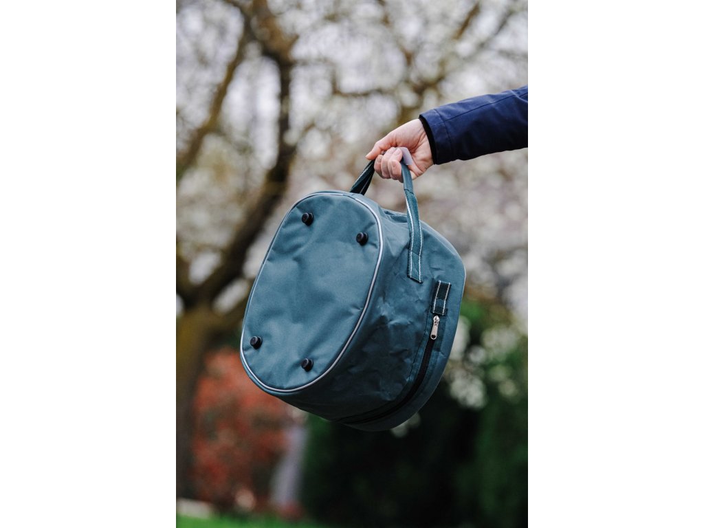 Praktická a odolná taška pro bezpečné přenášení a ochranu jezdecké helmy. Taška je vyrobena z nylonu, který je lehký, pevný a odolný proti znečištění. Má zapínání na zip, které umožňuje snadný přístup k helmě. Pevná zesílená rukojeť zajišťuje komfortní a bezpečné nošení.