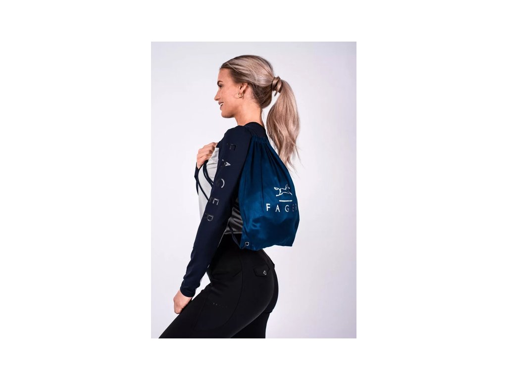 Sametová taška/vak, ideální pro jakoukoliv příležitost, ať už jdete do stáje, města či posilovny nebo lze použít pro uschování Fager udidel. Vyrábí se v tmavě modré barvě se stříbrným logem Fager. Vyrobeno ze sametového materiálu.