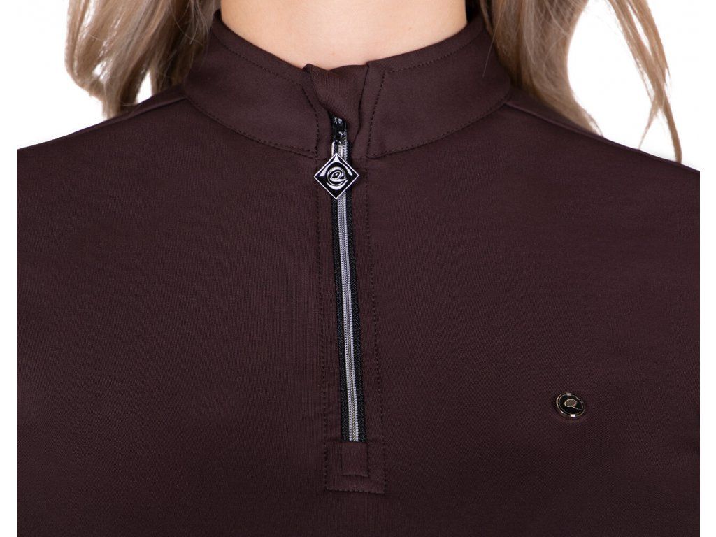 Velmi kvalitní dámské tričko opatřeno teplou podšívkou, která Vás zahřeje během chladných zimních dní. Vyrobeno je z vysoce elastického materiálu, který je prodyšný a poskytuje maximální pohodlí. Vybaveno je dlouhým rukávem, vyšším límečkem a krátkým zipem u krku. Rukávy jsou zdobeny černým pruhem a stříbrným nápisem „Equestrian Sports“. Tričko je k dispozici také ve velikostech pro děti a skvěle ladí k ostatním produktům z kolekce Julin. Součástí kolekce podzim/zima 2023/2024.