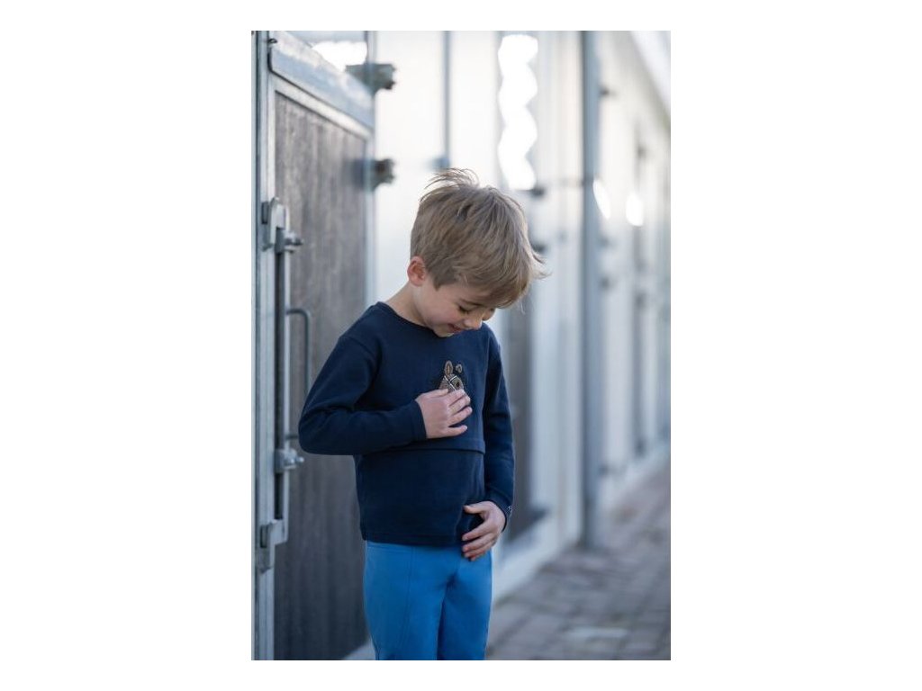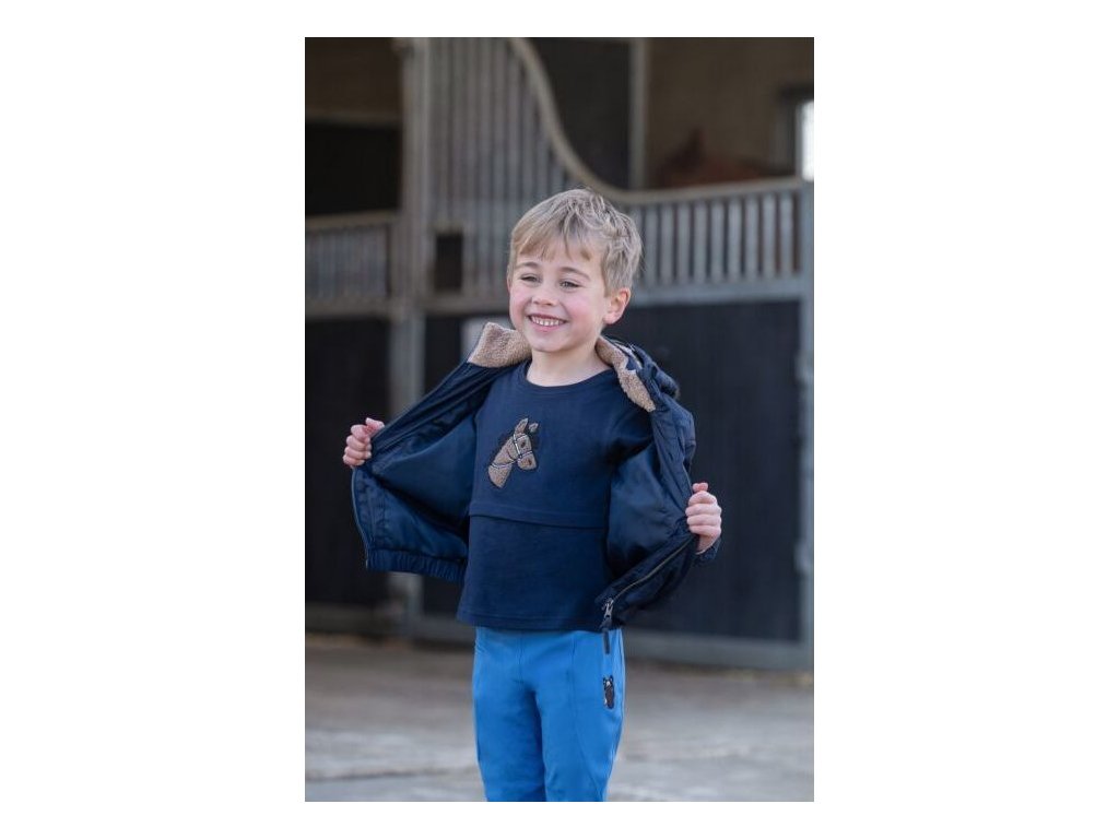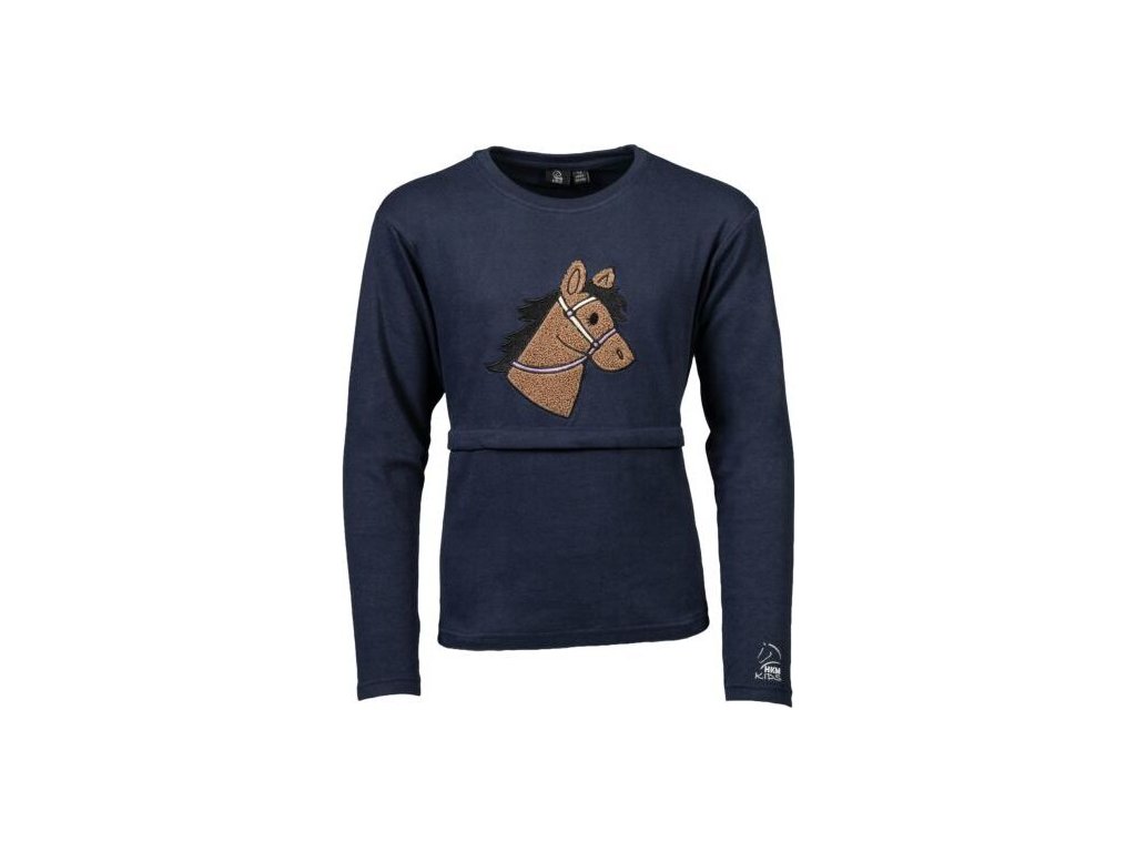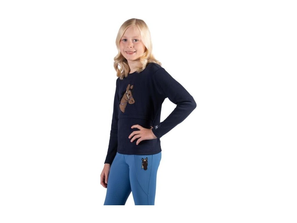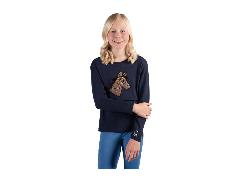 Dětské tričko s dlouhým rukávem je vyrobeno z měkké a pohodlné bavlněné tkaniny, která zajišťuje příjemné nošení po celý den. Přední část zdobí roztomilá aplikace s motivem koňské hlavy, která dodává tričku originální vzhled. Vnitřní strana je jemně kartáčovaná pro měkký a hřejivý pocit při nošení. Tričko lze prát v pračce na 30 °C a je vhodné i do sušičky, doporučuje se jemné praní.