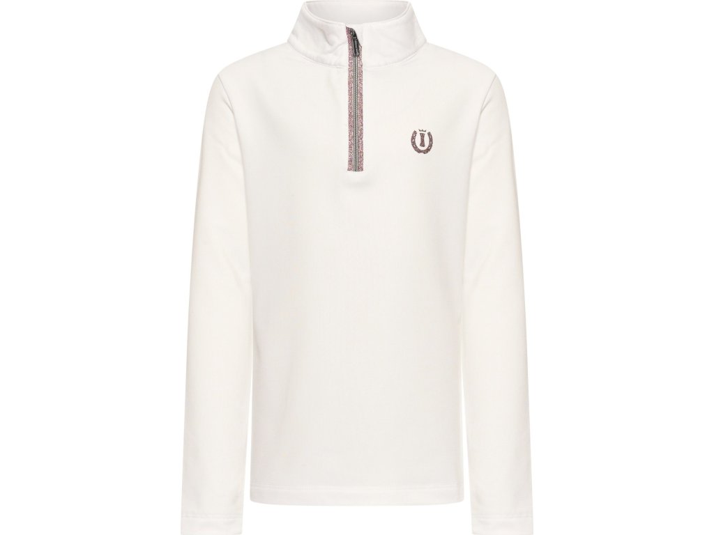 Dětské tričko Abby spojuje funkčnost s výrazným a hravým designem, který si mladé jezdkyně zamilují. Je vyrobené z příjemného, pružného žerzejového materiálu, který zajišťuje pohodlí po celý den při ježdění i při práci ve stáji. Dlouhý rukáv je ideální do chladnějších dnů nebo jako vrstva pod vestu či bundu. Poloviční zip je doplněn třpytivým detailem a ochranou brady pro vyšší komfort.
