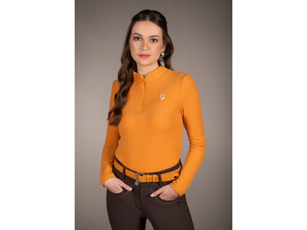 Elegantní dámské tričko s dlouhým rukávem spojuje sportovní vzhled s maximálním pohodlím. Prodyšný a elastický materiál se dokonale přizpůsobí postavě a umožňuje volnost pohybu. Tričko má přiléhavý střih a je vyrobeno z měkkého, žebrovaného materiálu příjemného na dotek. Praktický zip u límečku umožňuje snadné oblékání a svlékání. Zdobeno je decentní výšivkou. Lze prát v pračce na 30 °C.