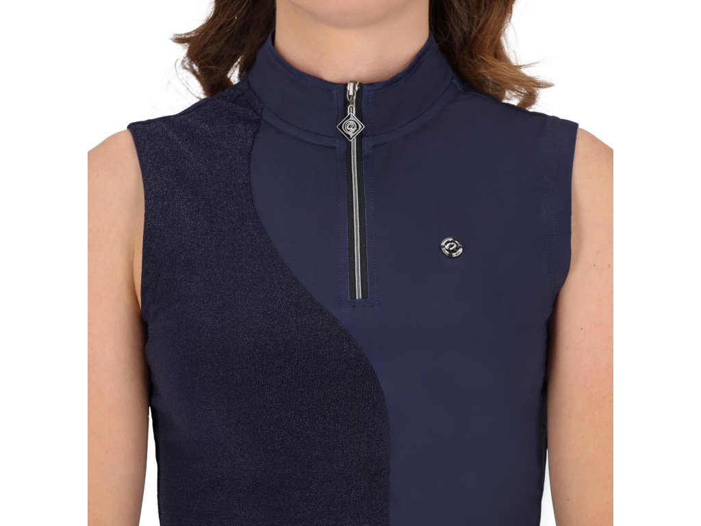 Sportovní dámské triko z hladké a pružné látky zajišťuje pohodlí při každodenním nošení. Vzhled oživuje třpytivý detail, stříbrný zip a odznak ve tvaru písmene Q na hrudi. Triko je ideální pro volnočasové aktivity i běžné nošení a snadno se kombinuje s dalšími kousky. Modelka na studiových fotografiích je vysoká 172 cm a má na sobě velikost 36.