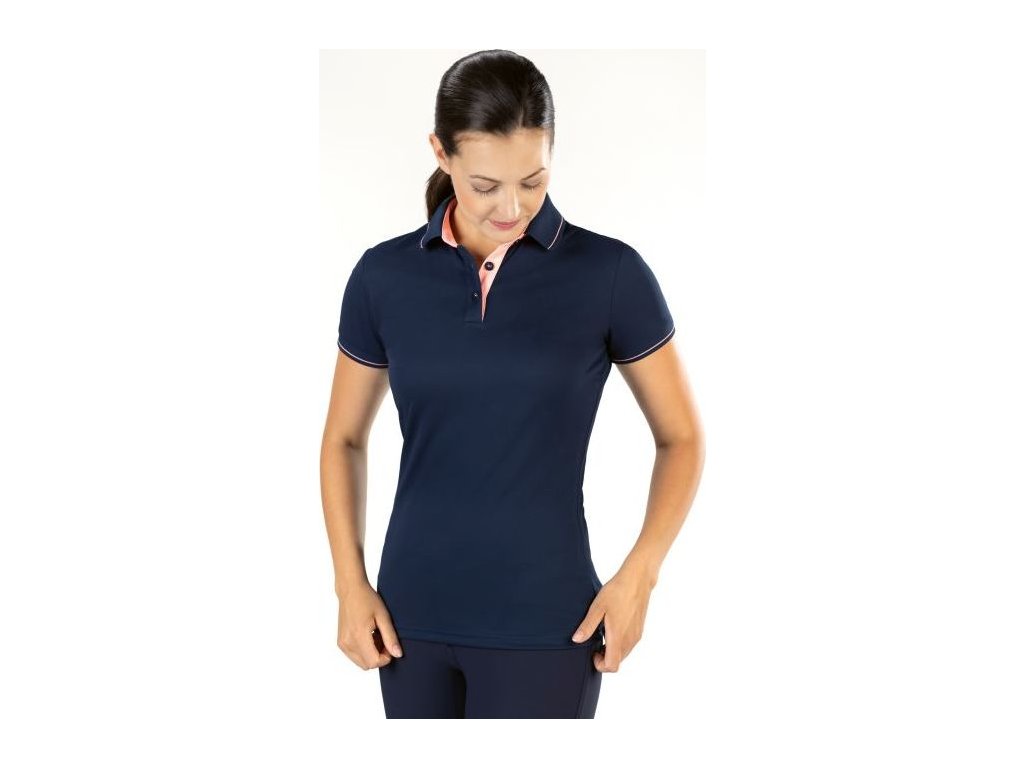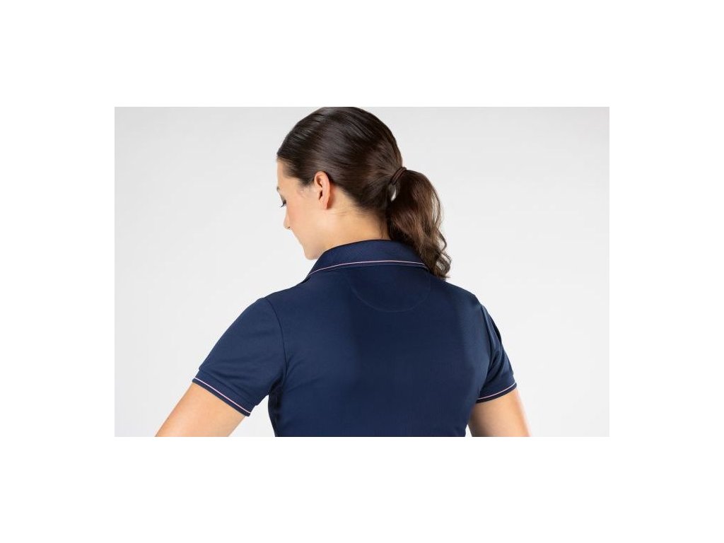 Kvalitní dámské polo triko s krátkým rukávem. Vyrobeno z prodyšného materiálu, ideální pro každodenní trénink. Tričko má užší střih, umožňuje naprostou volnost pohybu a optimální pohodlí. Vybavené límcem a zapínáním na tři knoflíky. Zdobeno kontrastní úpravou límce a rukávů. Vhodné do stáje i na běžné nošení. Možné prát v pračce na 30°C.
